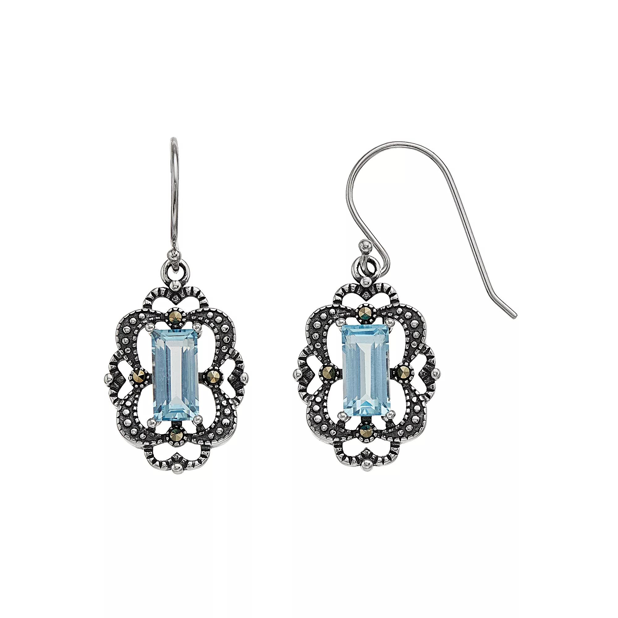 Decorated with icy blue topaz stones and marcasite accents, these Tori Hill earrings complete your look in style. Decorated with icy blue topaz stones and marcasite accents, these Tori Hill earrings complete your look in style. Length: 20 mm Backings: wire Metal: sterling silver Finish: antiqued, oxidized Packaging: boxedSTONE DETAILS Stone type: blue topaz Shape: rectangle Setting: glue/epoxy, micro prong Gemstones may have been treated to enhance their appearance. Special care may be required. Please visit our Gemstone Treatment & Special Care Guide for more information. Please note, due to the high value of this item, a signature may be required upon delivery. Size: One Size. Gender: female. Age Group: adult.