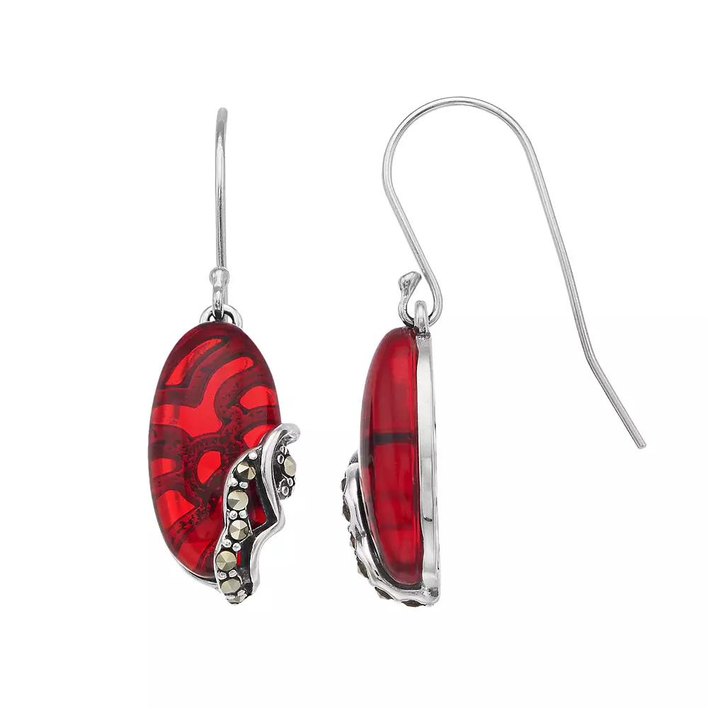 Make your look pop with the stunning style of these Tori Hill drop earrings. Make your look pop with the stunning style of these Tori Hill drop earrings. EARRING DETAILS Length: 1-in. Backings: fishhook Metal: sterling silver Finish: antiqued Packaging: boxed STONE DETAILS Stone type: marcasite & glass Color: red & gray Shape: round Gemstones may have been treated to enhance their appearance. Special care may be required. Please visit our Gemstone Treatment & Special Care Guide for more information. Size: One Size. Gender: female. Age Group: adult.