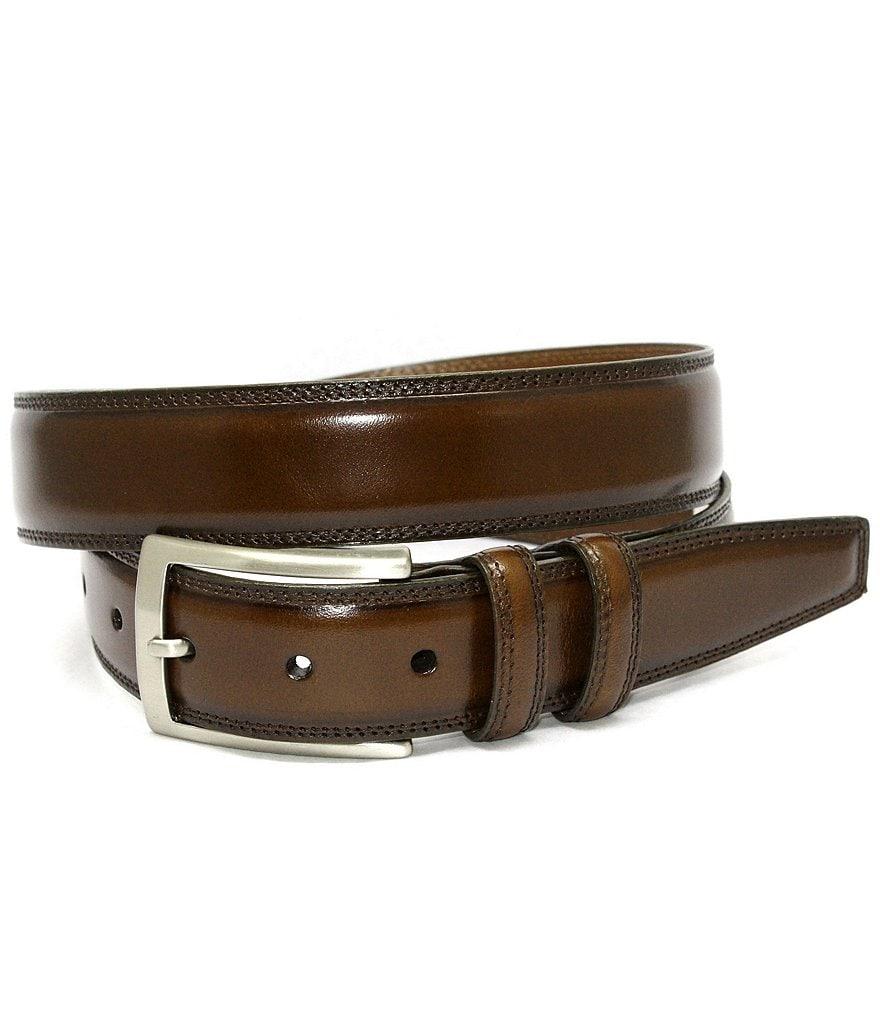 From Torino Leather Company, this belt features: 35MM width Italian calf leather Polished nickel-finish zinc buckle, loop and tip Spot clean Imported. Suggested belt size: Take your existing pants size and add two inches. E.g. if your pants size is 32, purchase a size 34.