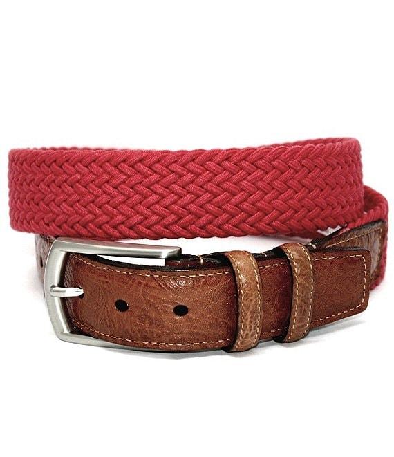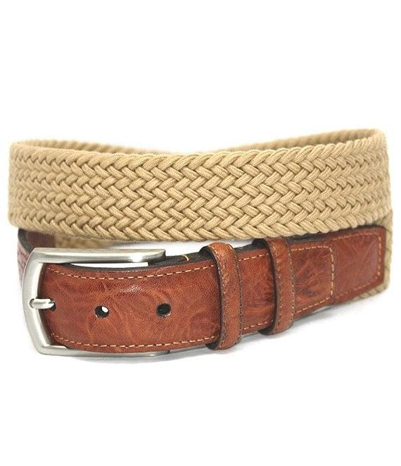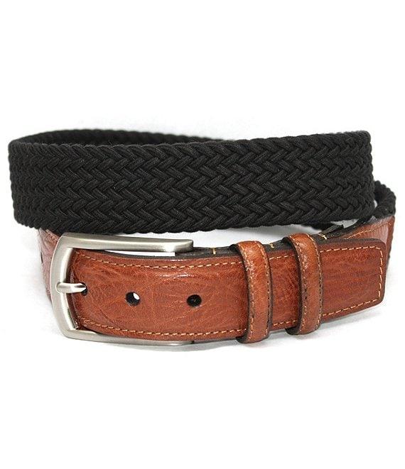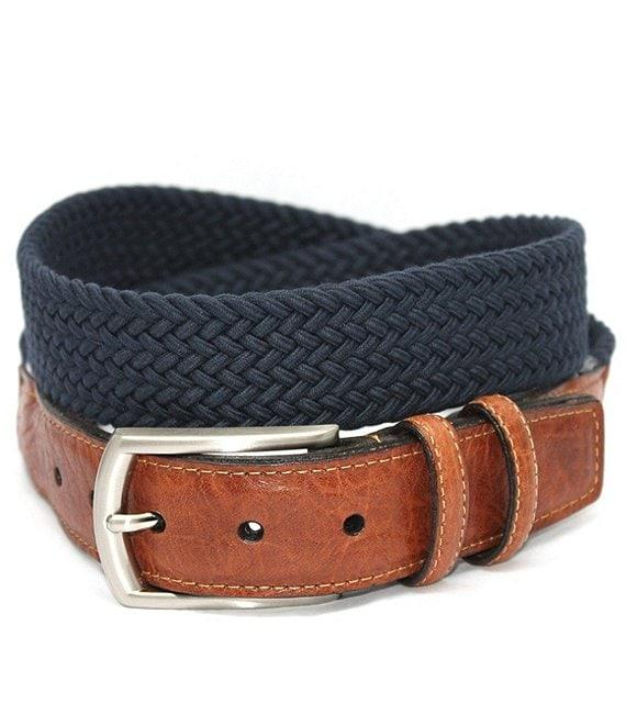 From Torino Leather Company, this belt features:32MM widthItalian woven cotton stretchPolished nickel-finish zinc buckle, loop and tipSpot cleanImported.Suggested belt size: Take your existing pants size and add two inchesE.g. if your pants size is 32, purchase a size 34.