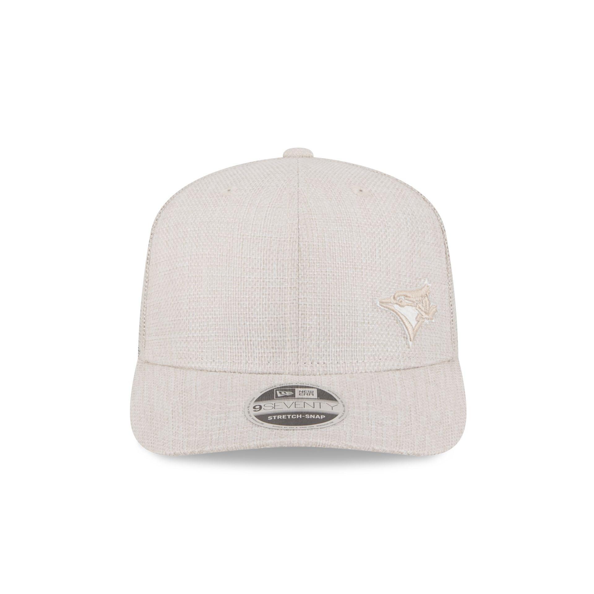 The Toronto Blue Jays Flawless 9SEVENTY Trucker Hat features a hemp fabrication with an embroidered Blue Jays logo at the front panels with an adjustable snapback closure at a mesh rear.