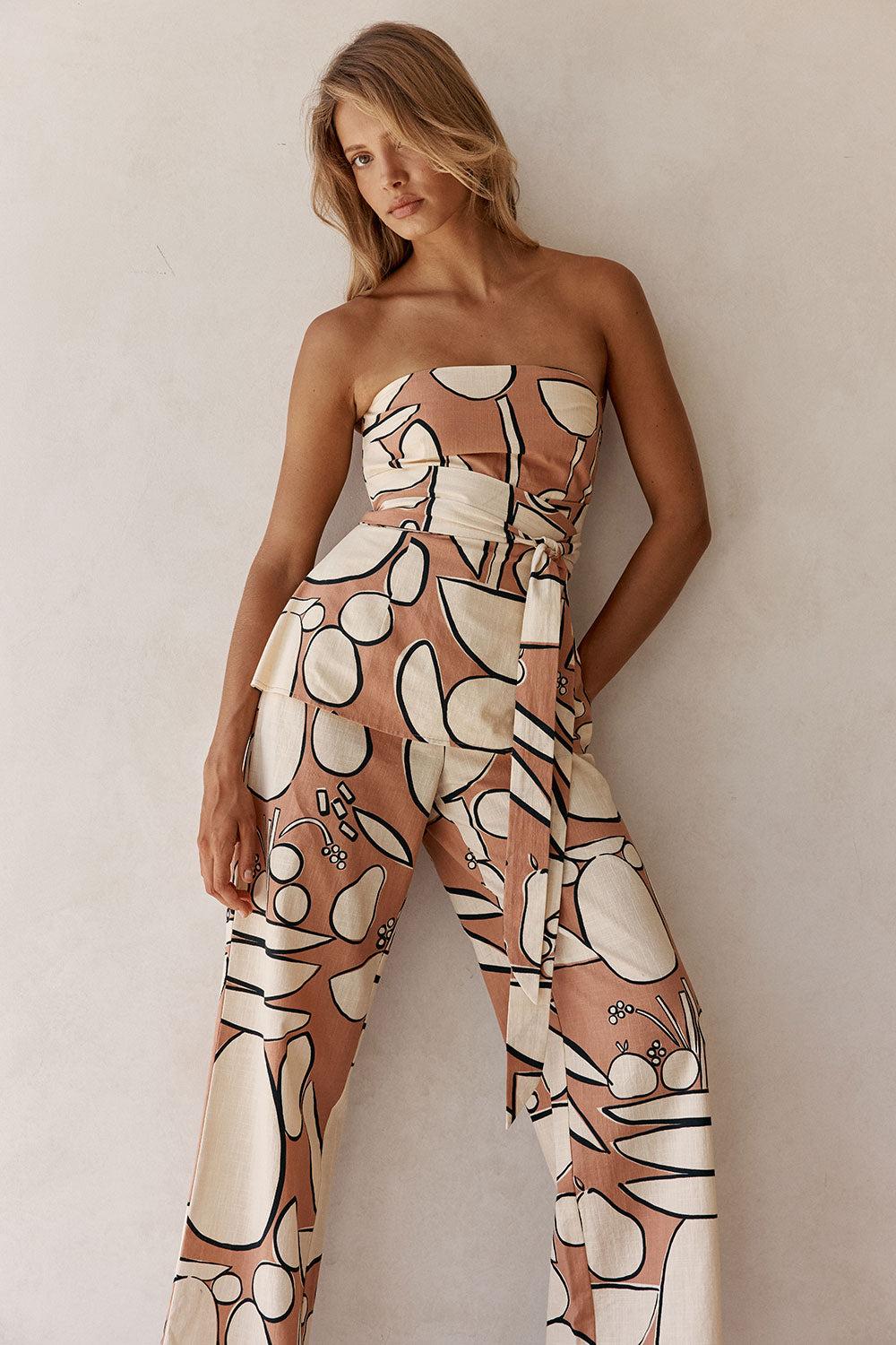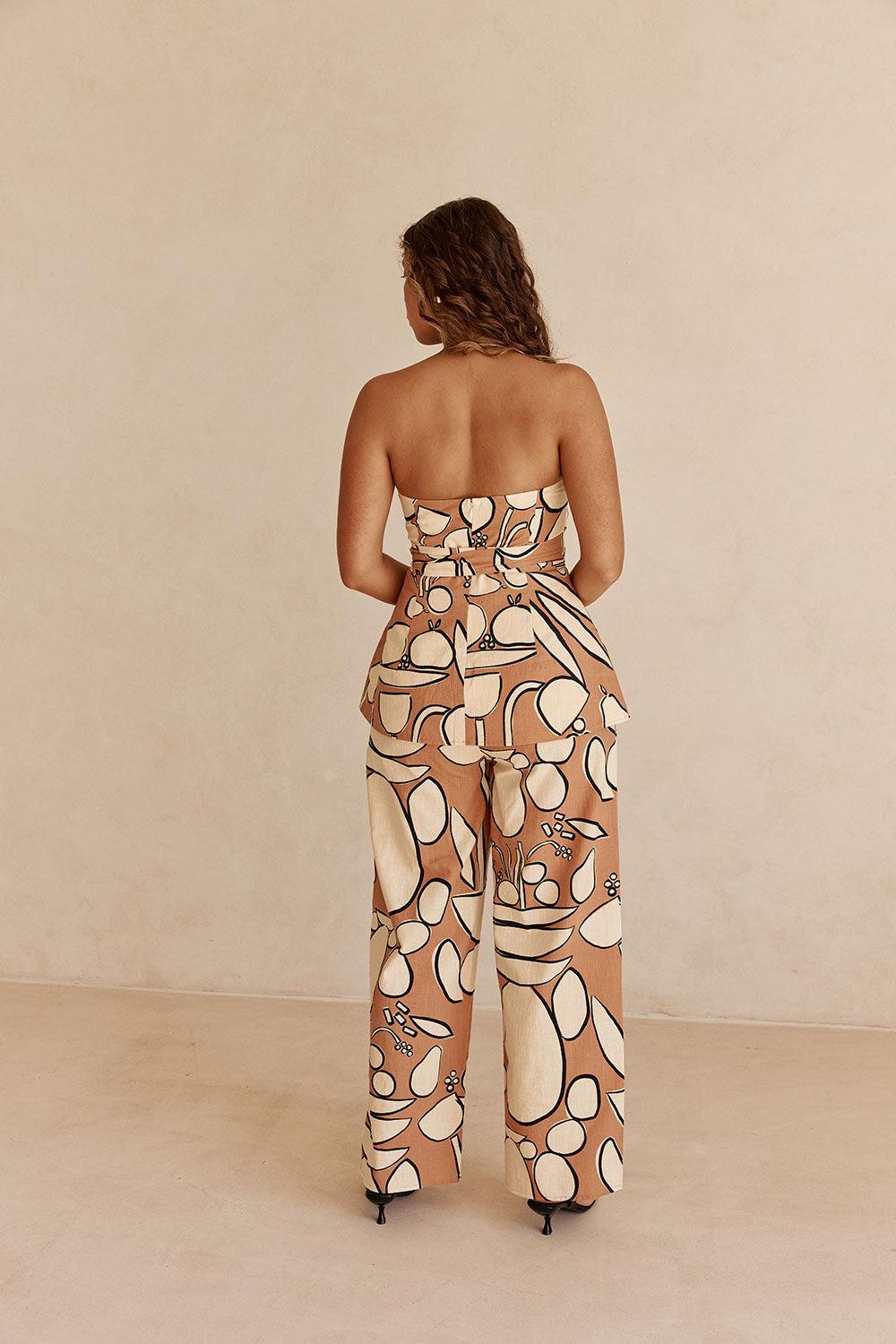 Designed to flatter, the Torquay Top is made from a natural cotton fabric with our exclusive Barrosa print. A strapless style featuring boning at sides of bust, wide attached tie detail and a-line hem. Get the set with the Torquay Pants. Designed exclusively by Sabo.