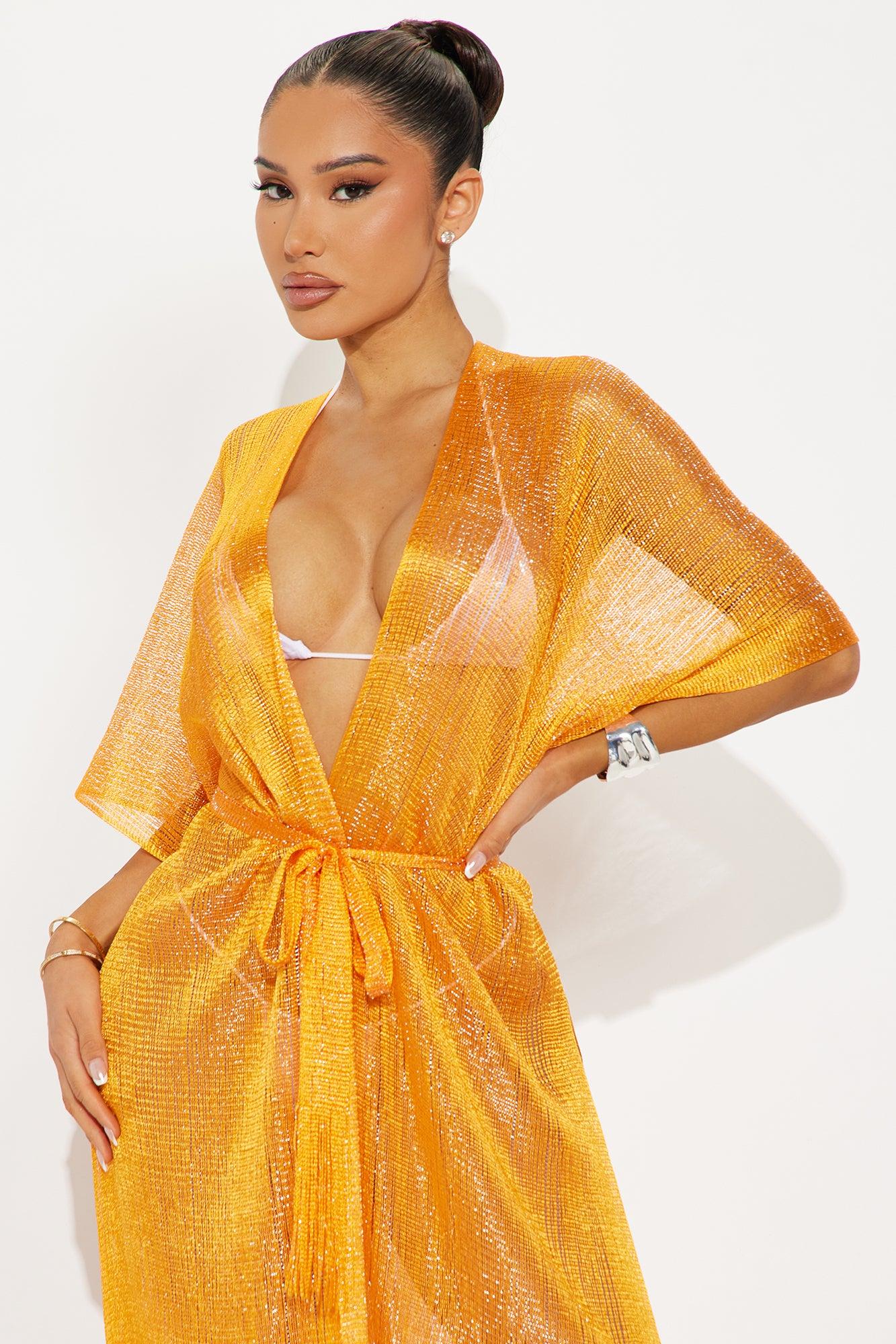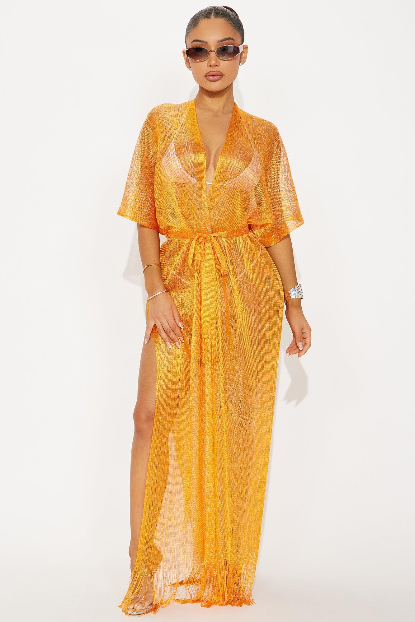 Touch Of Sun Fringe Cover Up Maxi Kimono - Orange Female