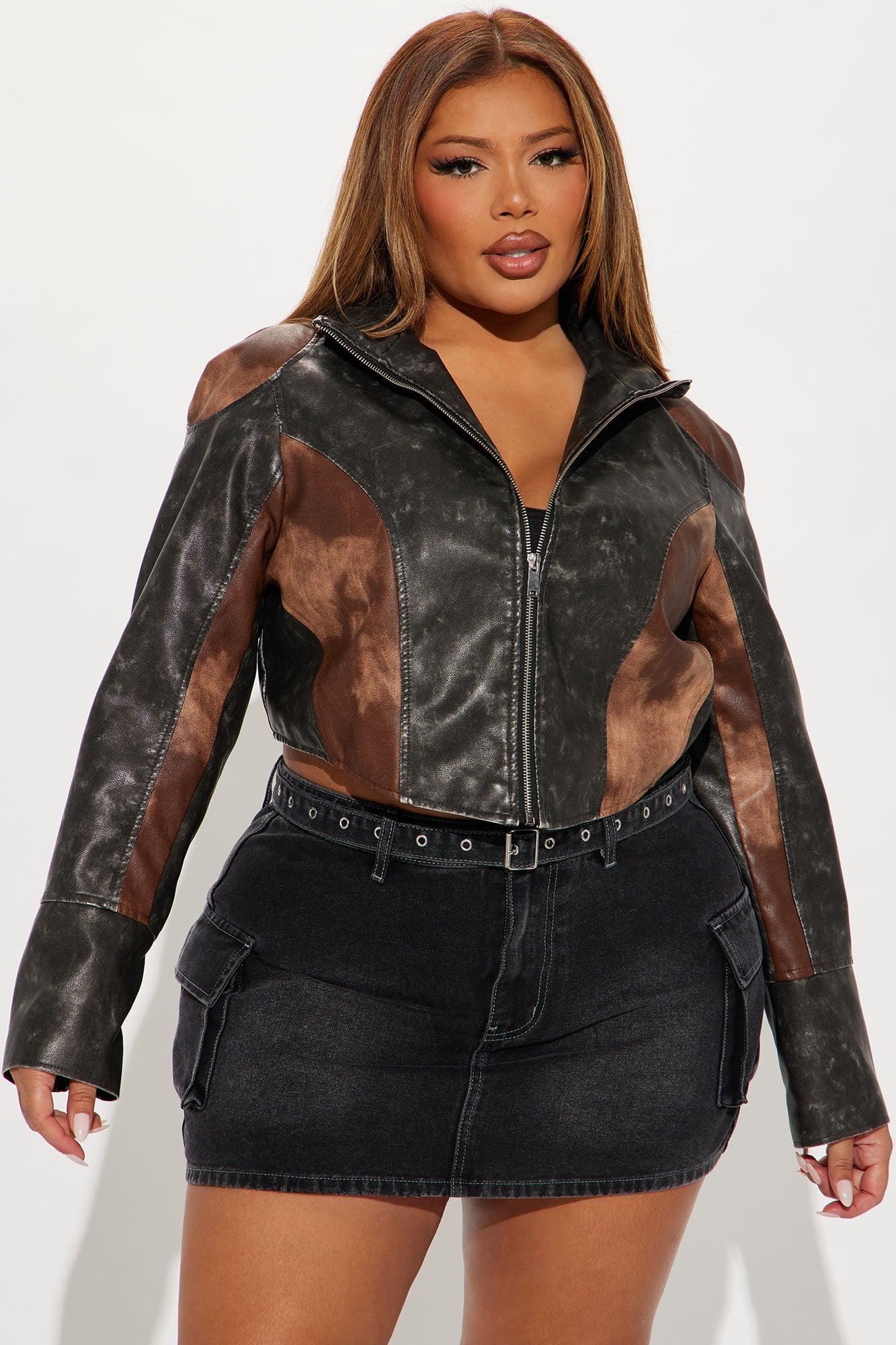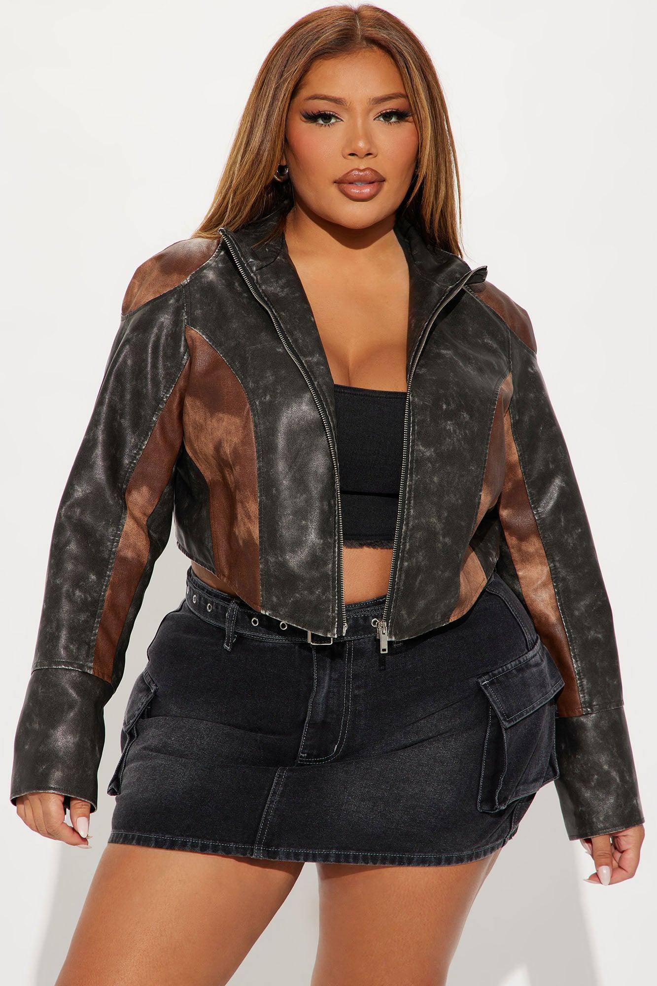 Available In Grey/combo. Jacket Collar Long Sleeve Faux Leather Colorblock Washed Seaming Detail Assymetrical Hem Cropped Fully Lined Shell Coating: 100% Polyurethane Backing/Lining: 100% Polyester Imported California Proposition 65WARNING: Cancer and Reproductive Harm - www.P65Warnings.ca.gov.