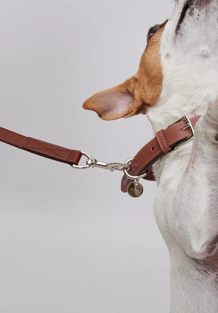 - Adjustable with a silver metal buckle. - A loop. - A silver metal ring to hang the lead. - An A.P.C. medal to be engraved with your personal details. - Silver embossed A.P.C. logo. - Contrast stitching.