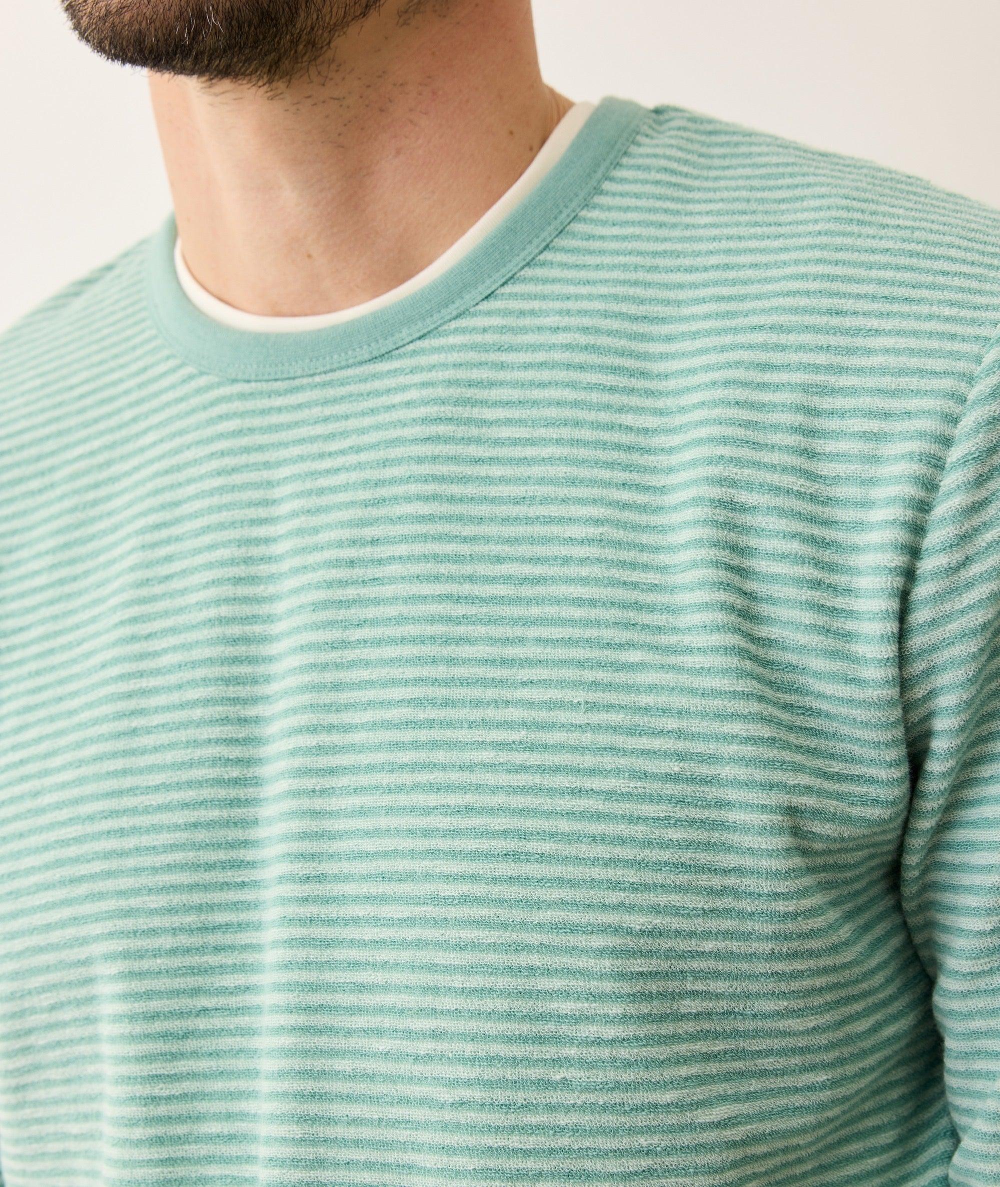 This shirt brings a little bit of beachy softness wherever you wear it. Made of a soft reverse terry, the inside is smooth and the outside is textured and slightly fluffy from the terry loops. Feels like grabbing a fresh towel after a dip in the ocean, minus the part where you’re covered in sand.
