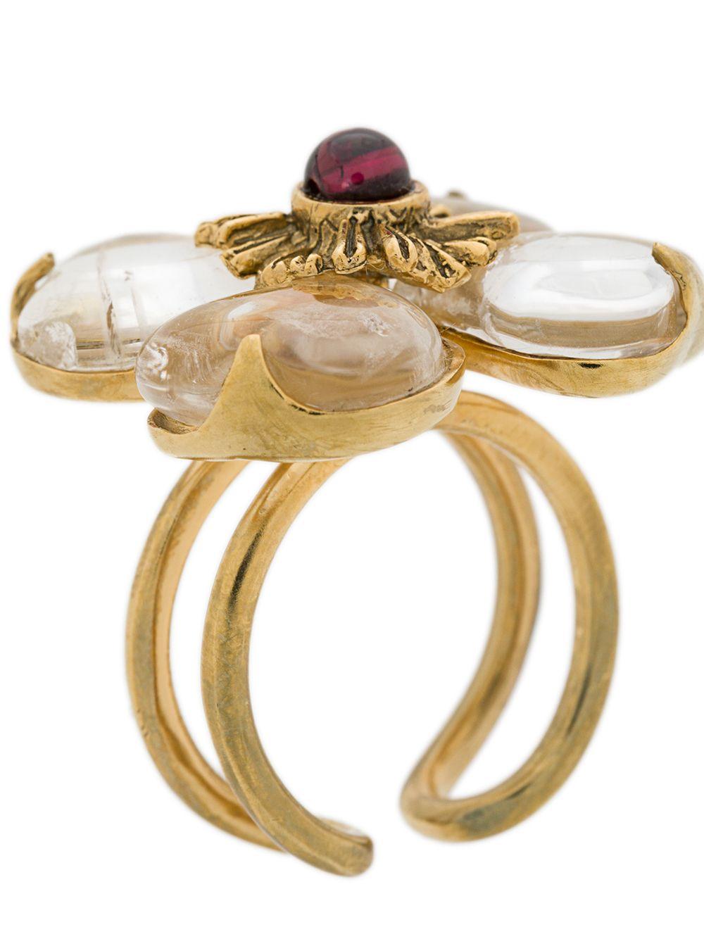 Goossens Trèfle ring | Gold | Crystal/24kt Gold Plate/Garnet | Rings | Jewelry | Women | Rings | Jewelry | Men