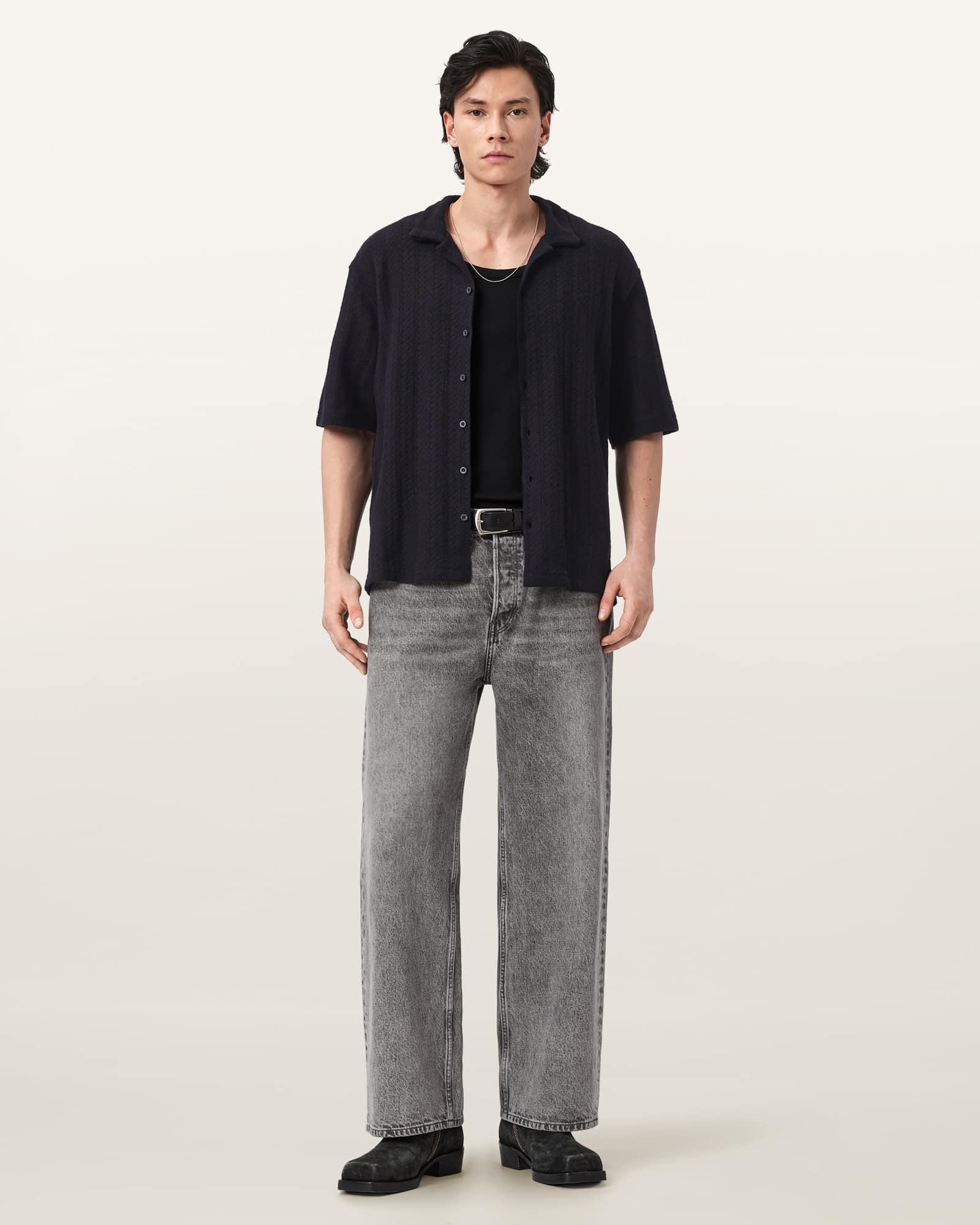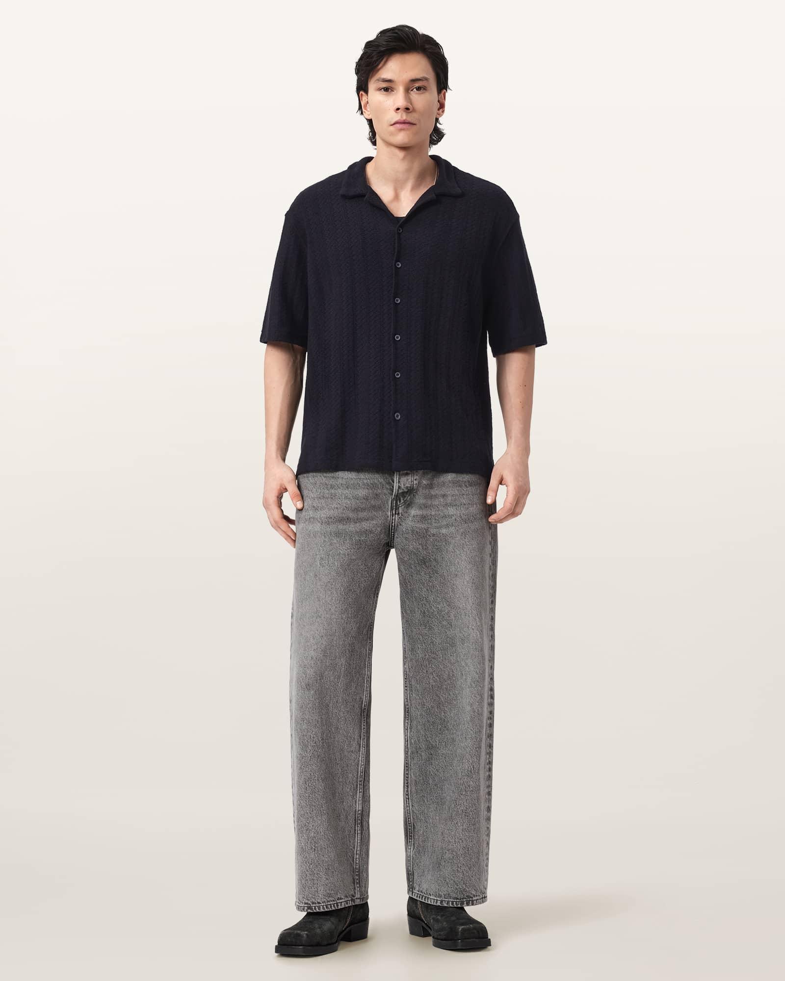 Trace Oversized Textured Shirt Jet Black | ALLSAINTS US