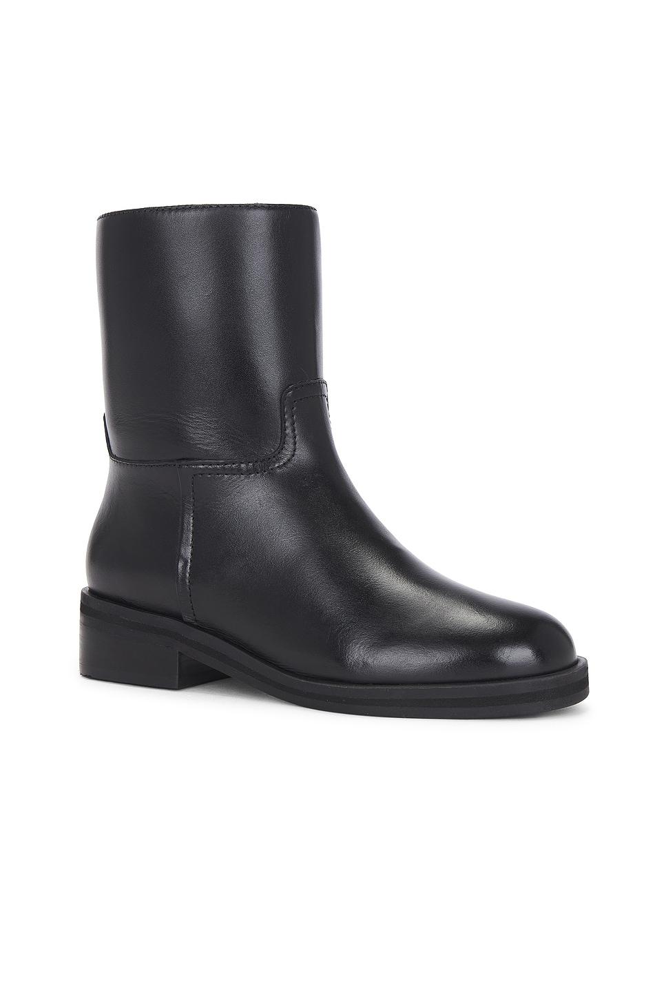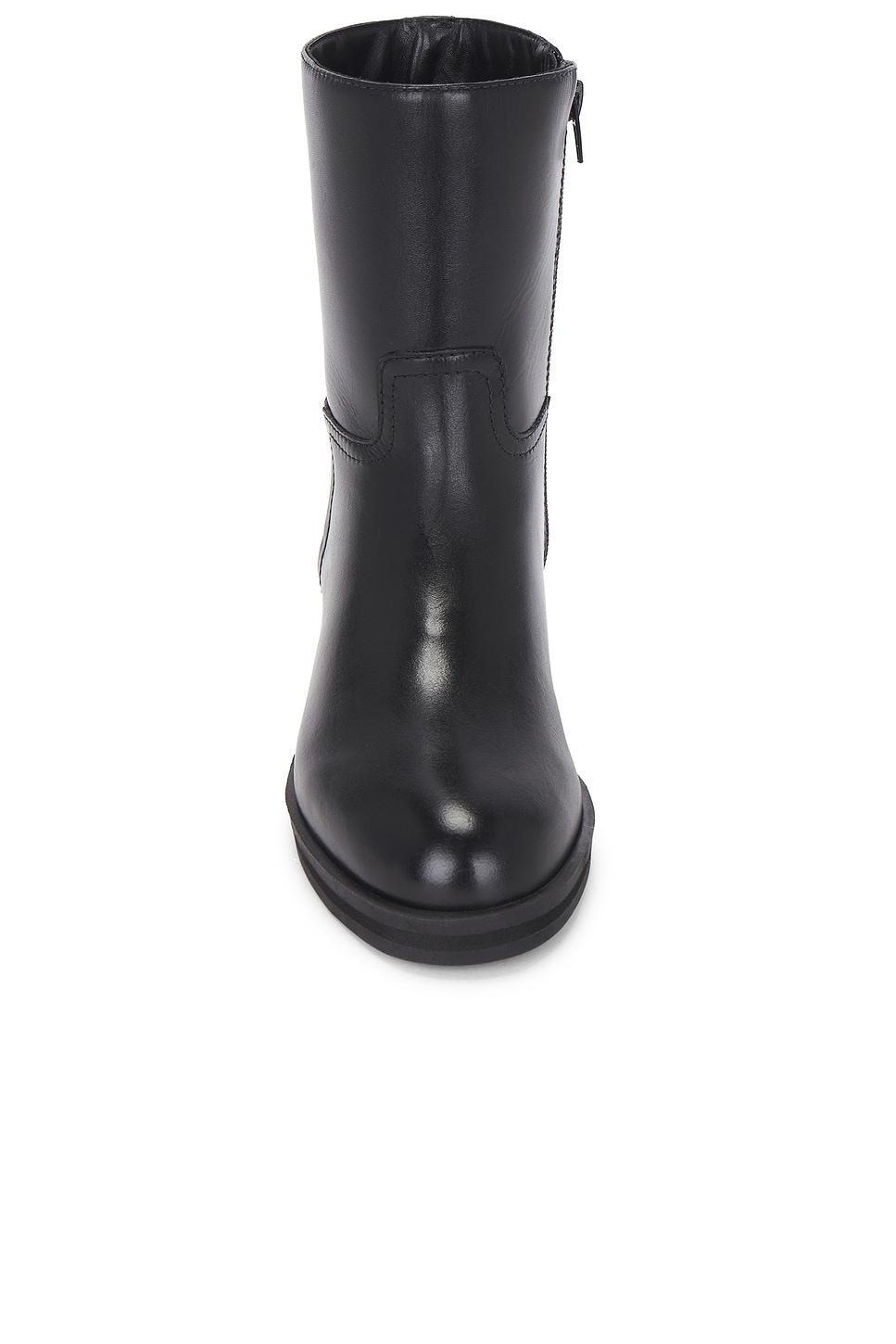Leather upper with rubber sole. Inner side zip closure. Cushioned textile footbed with leather lining. Almond toe. Block heel. Approx 25mm/ 1 inch heelApprox 171.45mm/ 6.75 inch shaftOpening measures approx 16.48" in circumference. Made in Brazil. Revolve Style No. LPAR-WZ205. Manufacturer Style No. LPSH10010 F25.