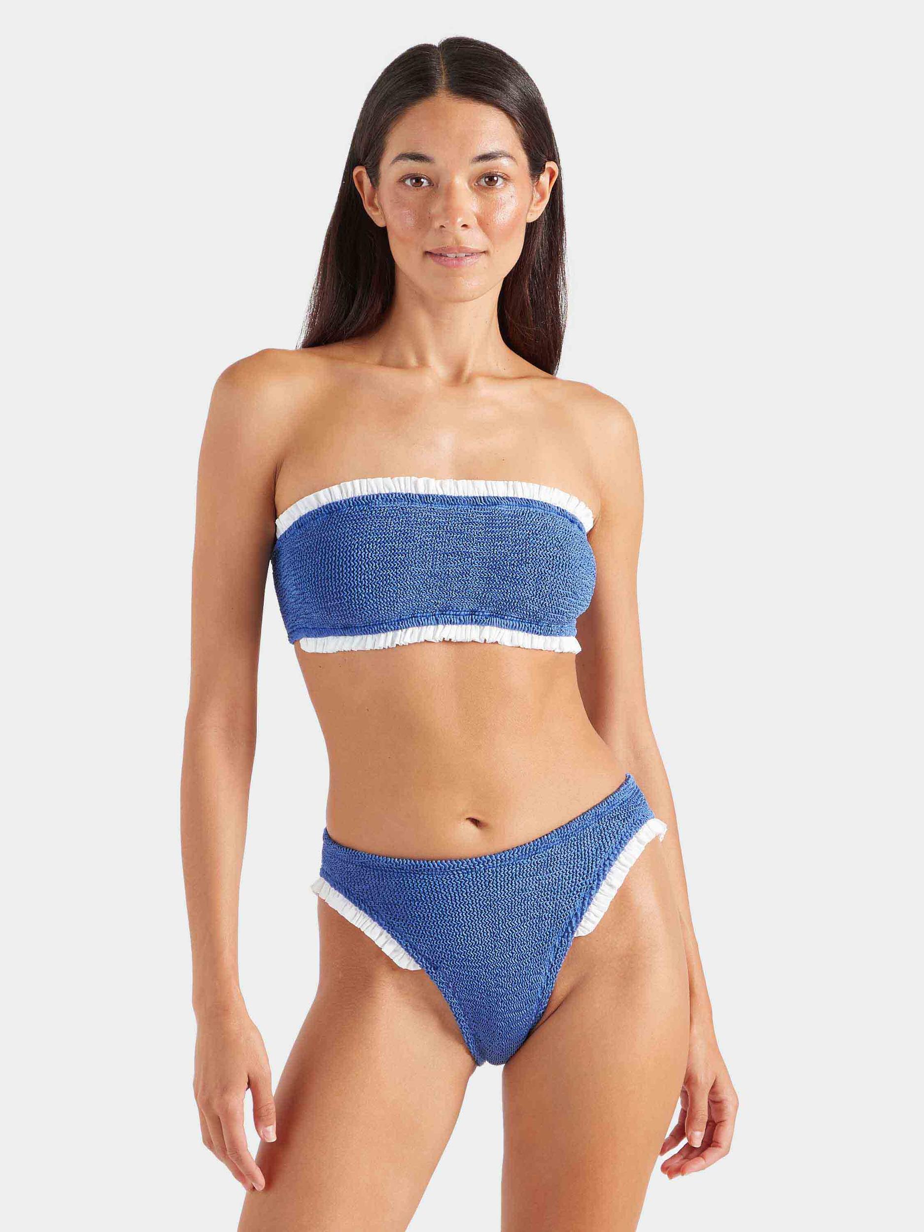 Chic, playful, nostalgic. The return of our cult Tracey bikini, in all-new colourways. With frill detailing on the top and hips, there's a reason Tracey is a Hunza G icon.