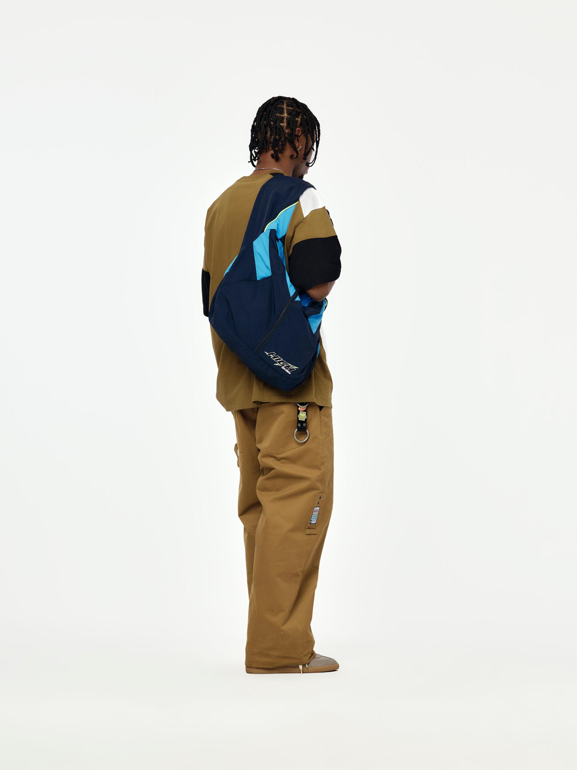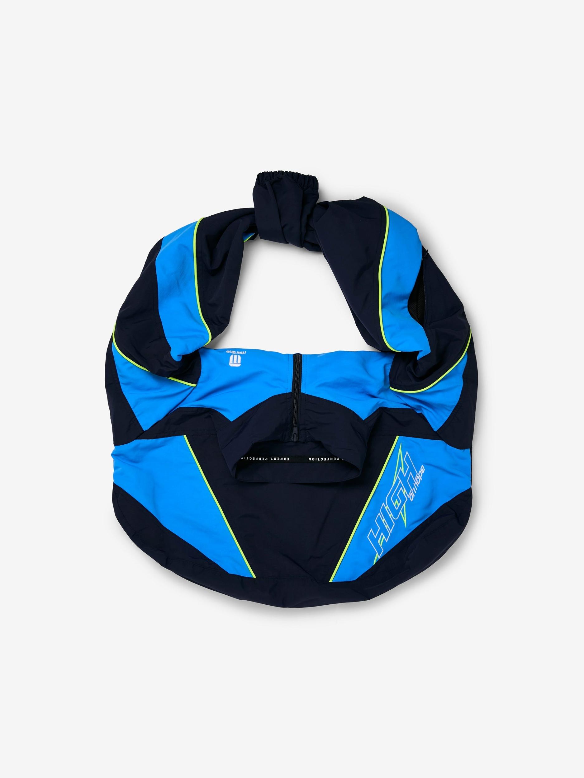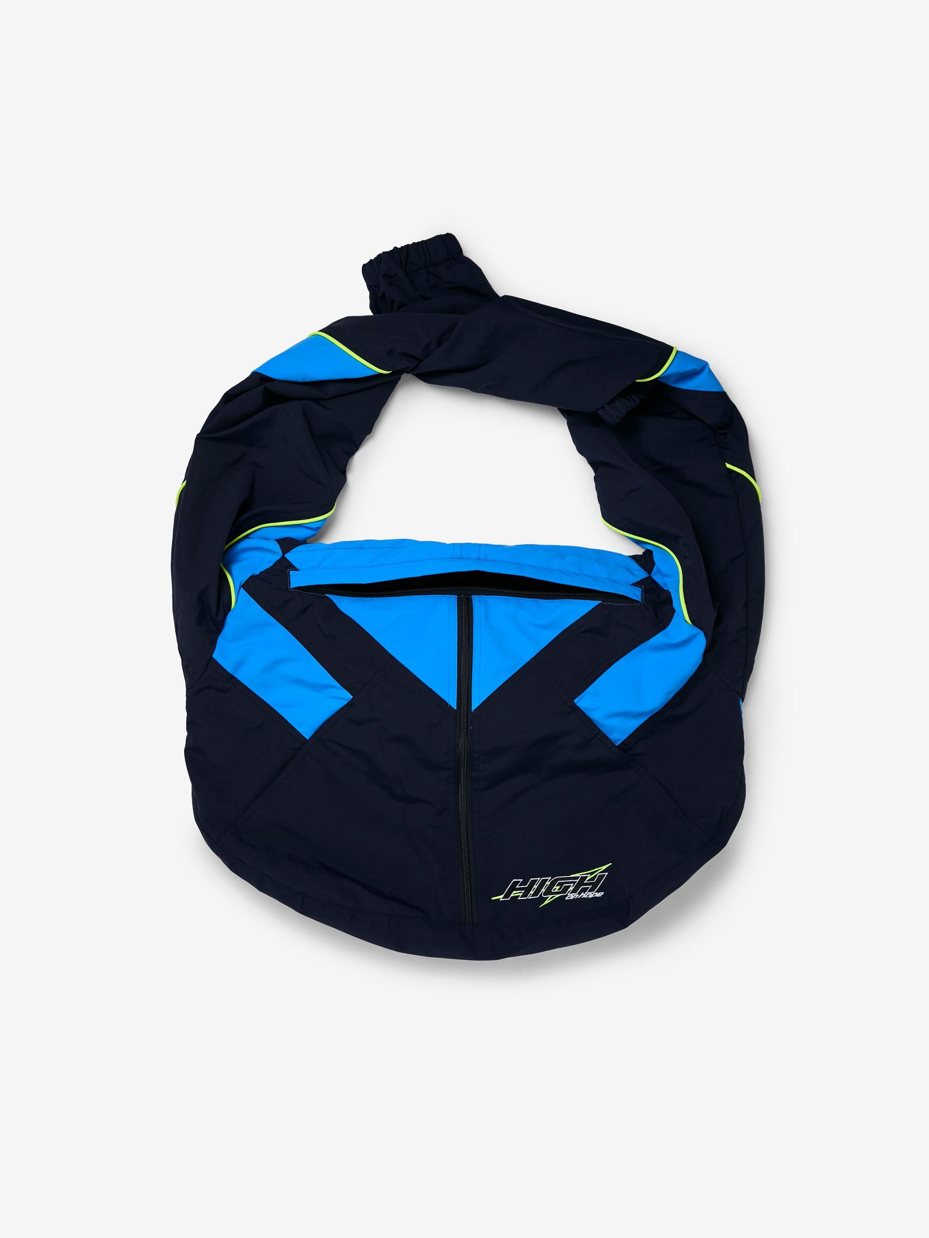 Martine Rose turns a basic tote into a nostalgic statement. Cut like a vintage track jacket, this bag blends sportswear cues with utilitarian streetwear. Zip closure, tonal navy palette, and athletic trims give it both function and flex. Whether it’s over the shoulder or under the arm, this one's built for the commute, the studio, or the scene. SKU: 1144WSP01504-BLU
