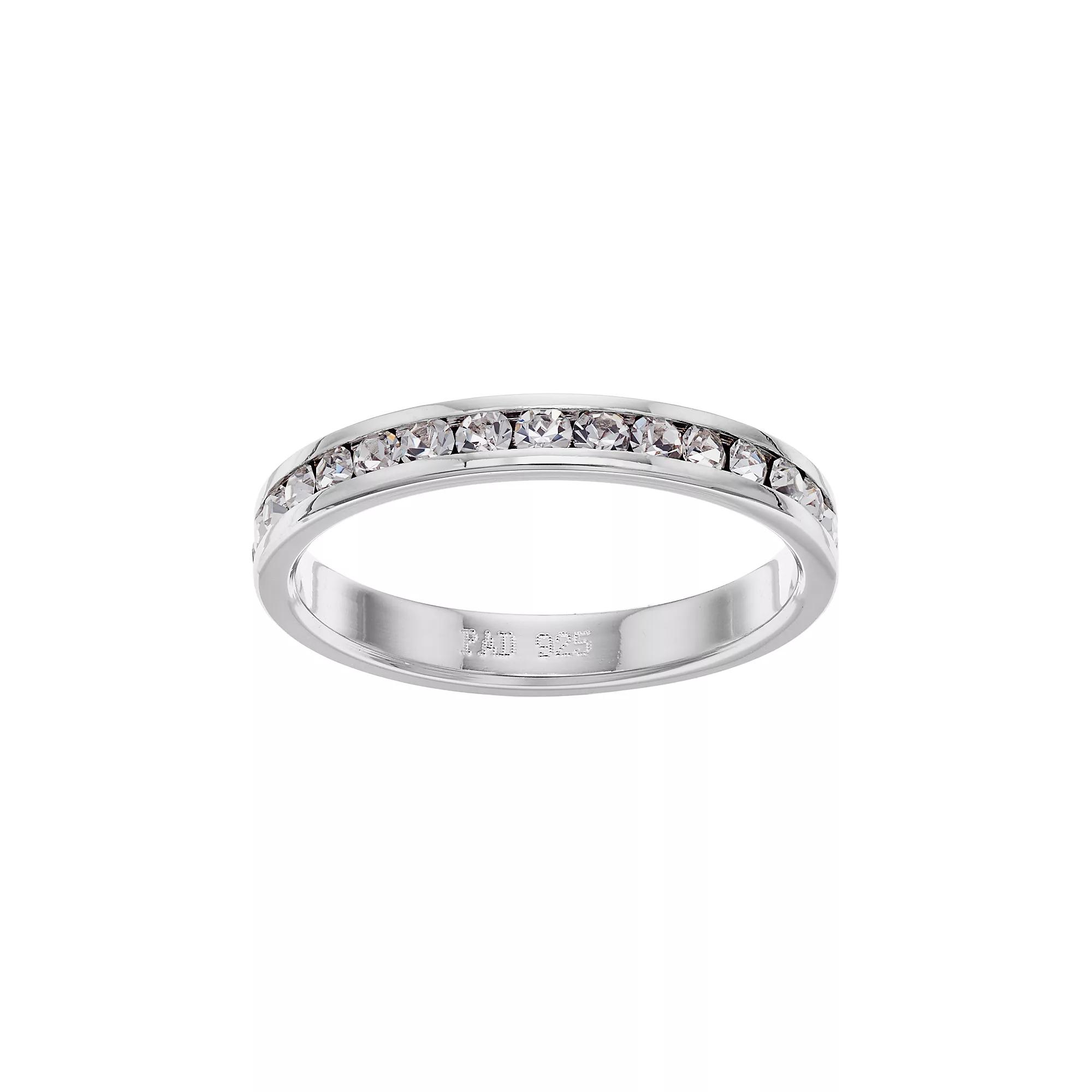 Adorned with channel-set crystals, this sterling silver birthstone eternity ring sparkles from every angle. RING DETAILS Width: .13 in. Metal: sterling silver Plating: rhodium Packaging: boxed Size: 6. Color: White. Gender: female. Age Group: adult.