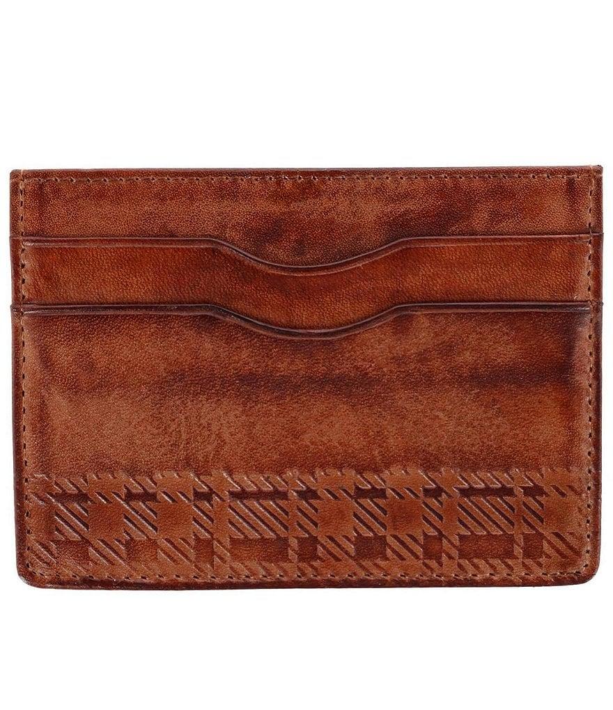 From Trafalgar, this card case features:(2) x card slots on each sideRFID protectedPlaid embossing detail on front sideGenuine Full Grain LeatherMeasures 4 1/8 x 2 7/8 inchesSpot cleanImported.