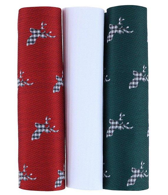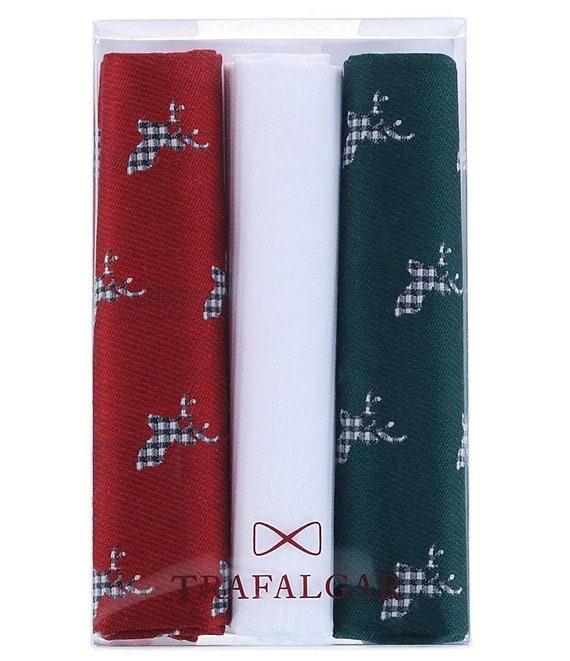 From Trafalgar, this set features: 3 x assorted handkerchiefes Makes a great gift A Gingham comet reindeer design on each one In addition to being handkerchiefs, these can also double as a stylish pocket square 12 x 12" in. Polyester/cotton Machine wash with easy care Imported