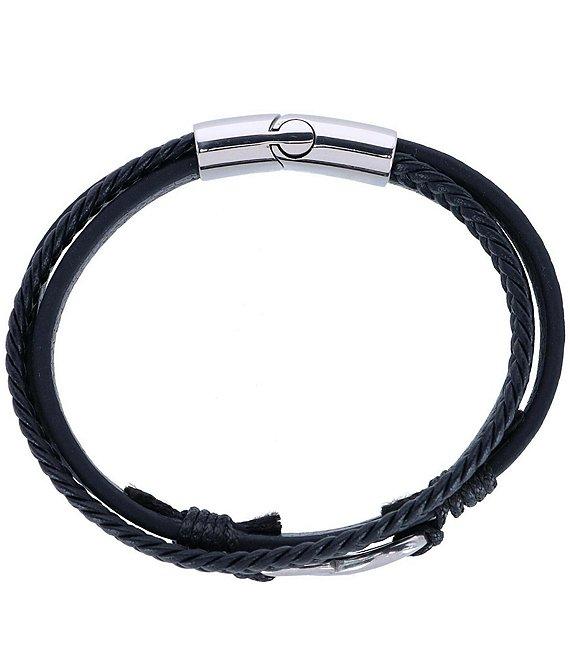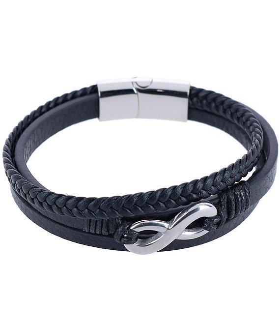 From Trafalgar, this bracelet features: Features a triple-strand leather look with two pebble grains and one braided strandFeatures an elegant silver infinity symbolComfortably fits any wrist up to 8 inches in diameterFantastic for a distinguished gentleman of any ageAdd a little arm candy to your look and show off your personality while keeping it professionalMade of leather and metalImported.