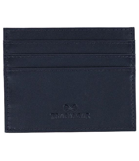 From Trafalgar, this wallet features: (6) x slots for your debit and credit cardsFeatures center pocket for folded bills or receiptsGenuine full grain leatherMeasures 4-inches long by 3 1/16 inches highSpot cleanImported.