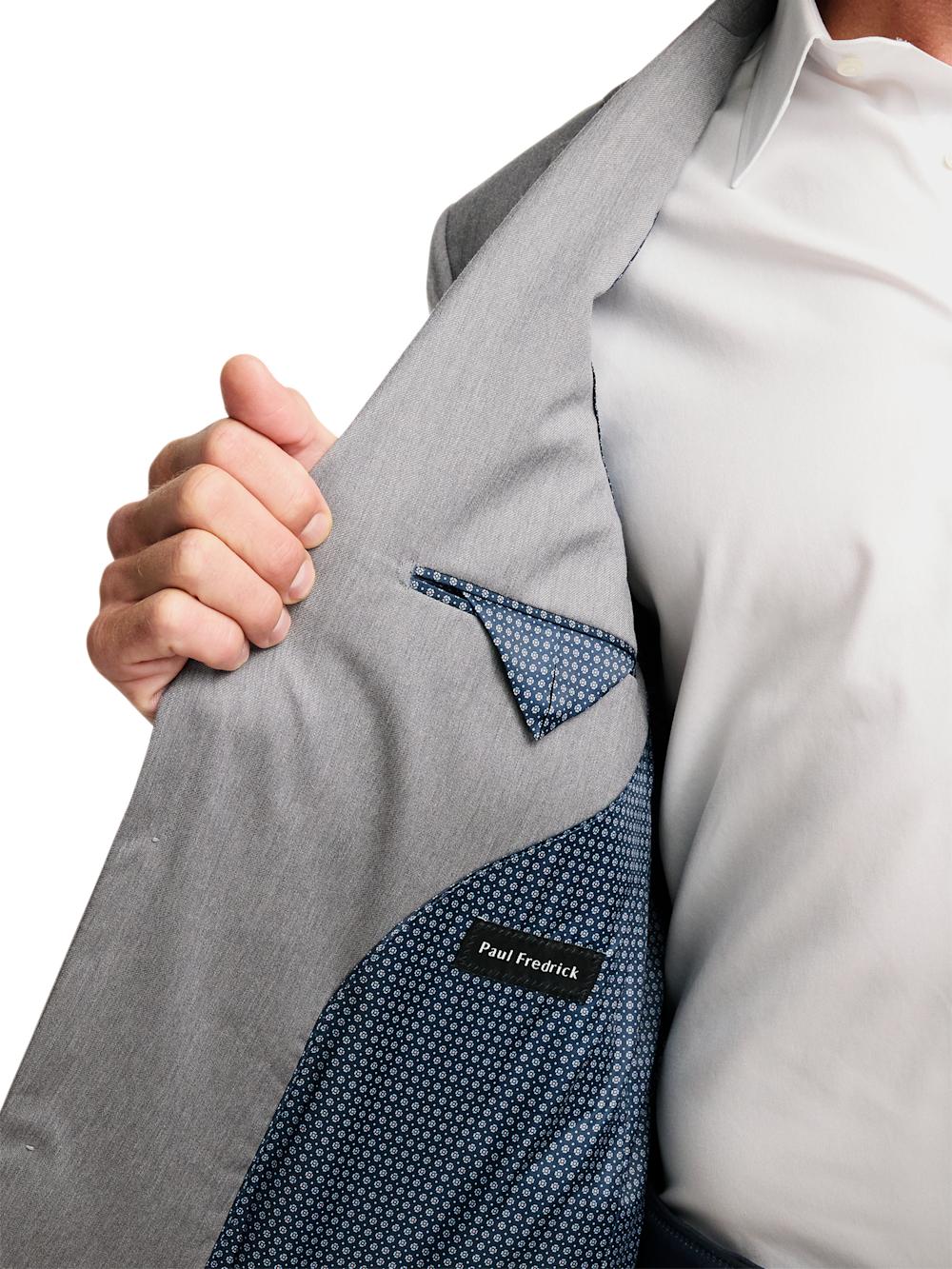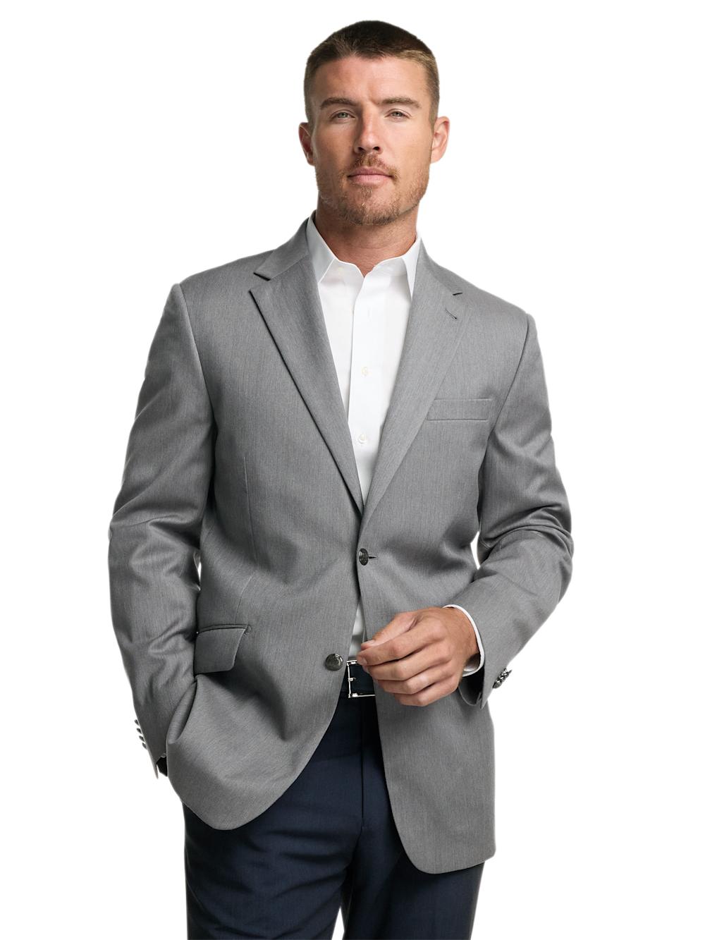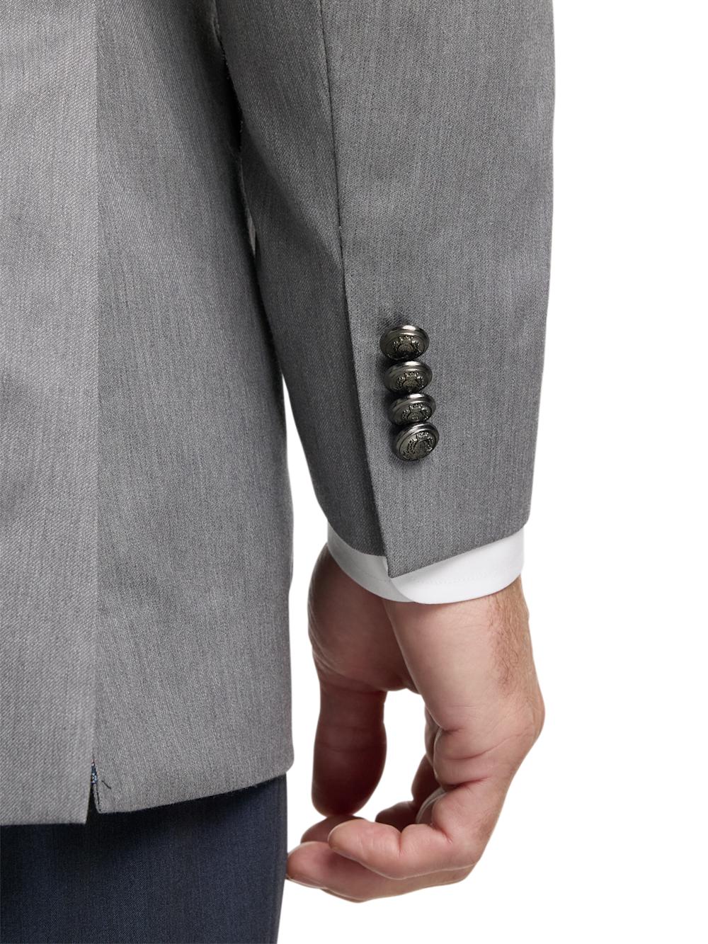 Features Two-button Front, Side Vents, Notch Lapel Comfort Stretch Armhole Fully Lined With Scalloped Facing Two Lower Besom Flap Pockets, Welt Breast Pocket, Four Inside Pockets Wrinkle And Stain Resistant Content & Care Wool Dry Clean Only Imported Style# JA2026A