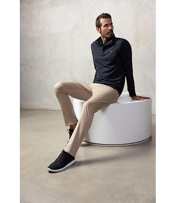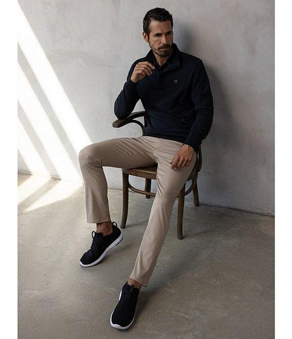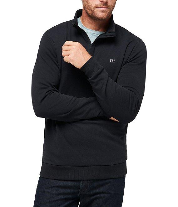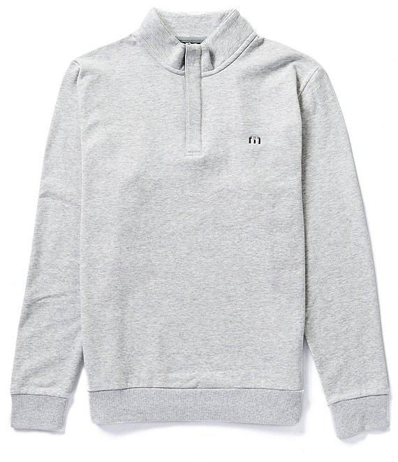 Form TravisMathew, this pullover features: Mock neckline Long sleeves with ribbed cuffs TM logo on left chest Quarter-zip closure Ribbed detailing at hem and cuffs Breathable Incredibly soft Ultra-soft plush fleece fabric Cotton/polyester/spandex Machine wash/tumble dry Imported.