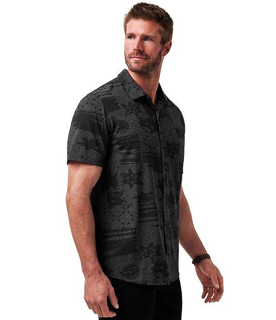 From TravisMathew, this shirt features: Allover print Signature double-needle spread collar Built-in collar stays for the perfect shape Short sleeves Button-front closure Custom buttons for an elevated look "TravisMathew" logo embroidery on the lower inside placket Pullover construction Cotton/modal/elastane Machine wash/tumble dry Imported.