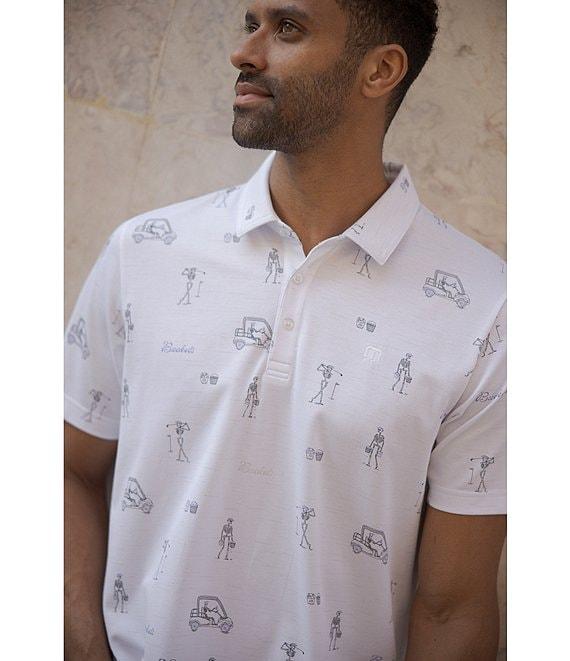 From TravisMathew, this polo shirt features: All-over golfing skeletons print Signature double-needed collar Built-in collar stays 3-button placket Short sleeves Cotton/polyester Machine wash/tumble dry Imported.