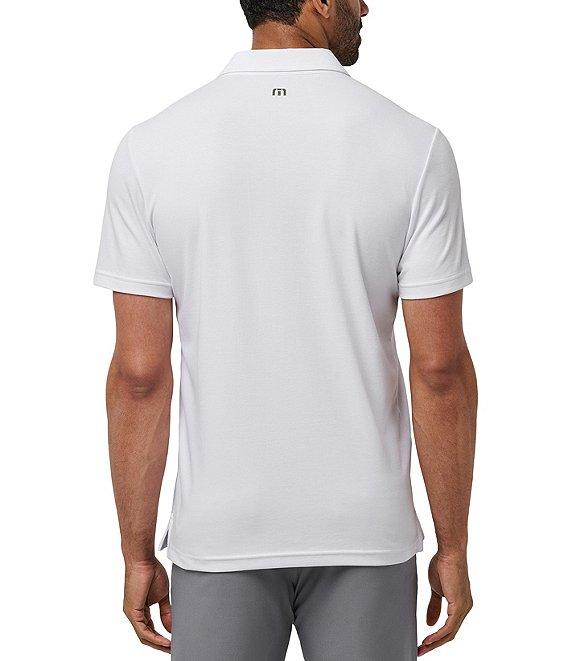 From TravisMathew, this polo shirt features: Signature double-needle polo collarwith built-in collar stays Short sleeves 3-button placket Signature chest stripe detail Printed logo on back yoke Pullover construction Cotton/polyester Machine wash/tumble dry Imported.