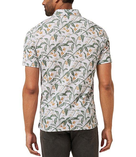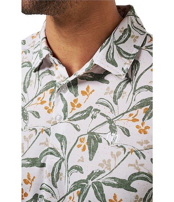 From TravisMathew, this polo shirt features: Allover floral print Polo collar Short sleeves 3-button placket Pullover construction Classic fit Cotton/polyester Machine wash/tumble dry Imported.