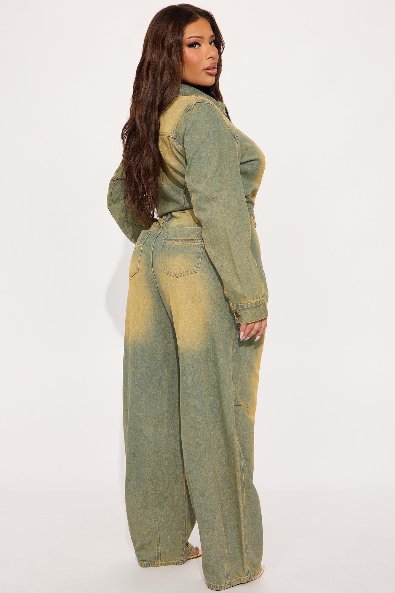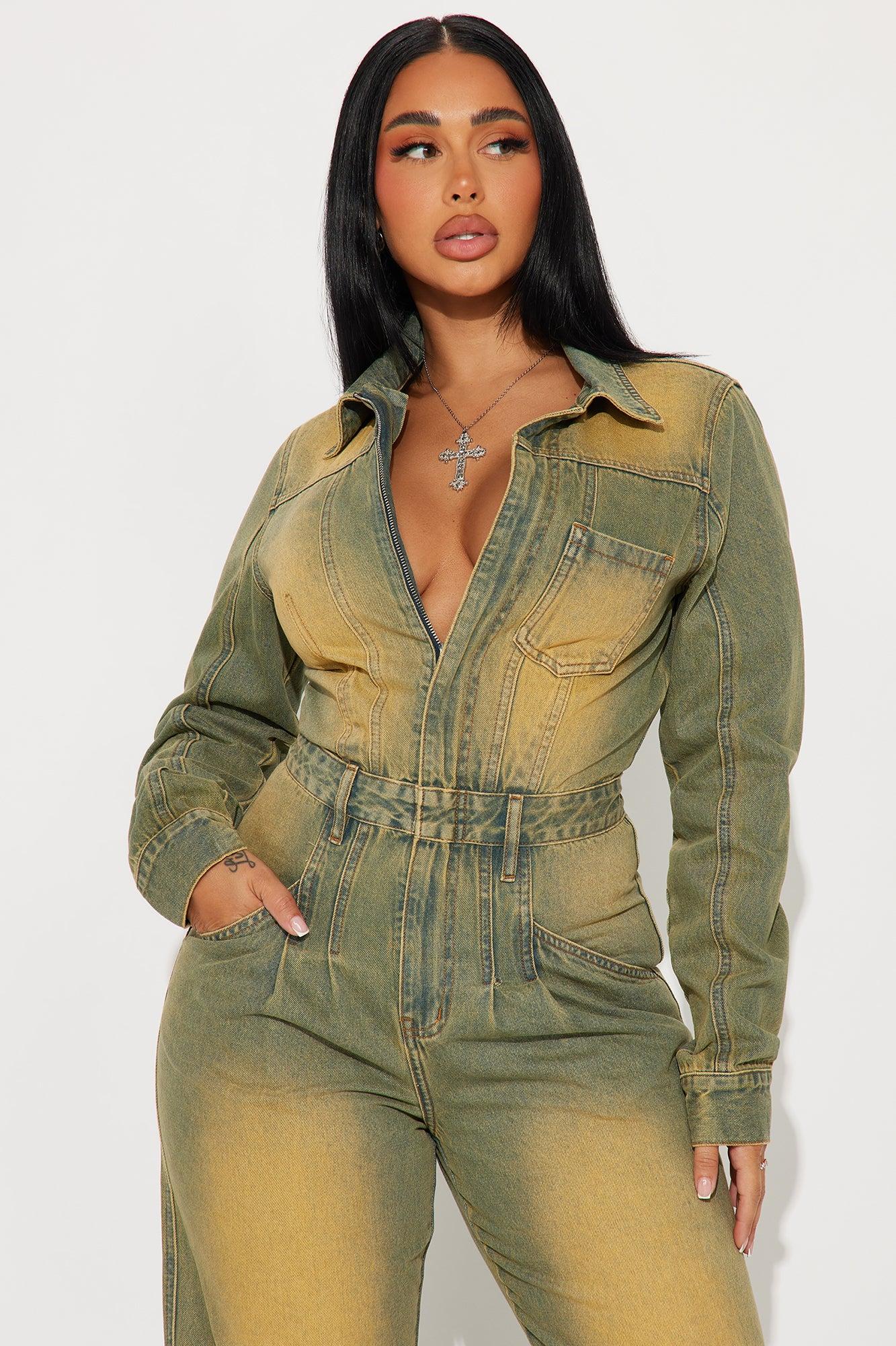 Available In Vintage Wash. Denim Jumpsuit Long Sleeve Collar Zip Front Pockets Washed Non Stretch Disclaimer: Due To The Specialized Wash, Each Garment Is Unique. 100% Cotton Imported California Proposition 65WARNING: Cancer and Reproductive Harm - www.P65Warnings.ca.gov.
