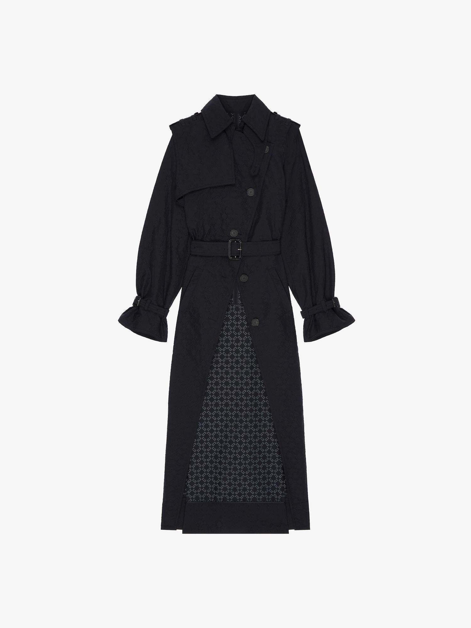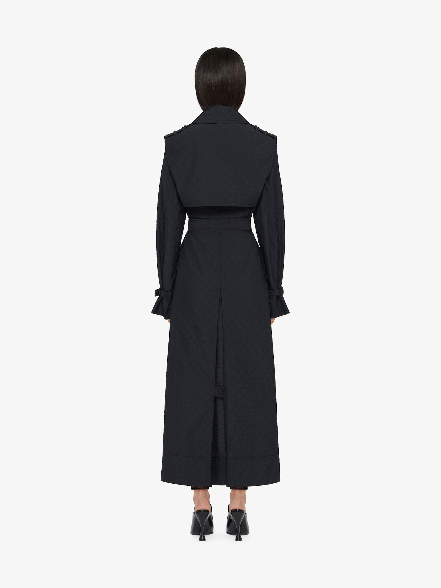 The Monogram 72 is reimagined this season in elevated fabrics and bold shapes. This trench-coat is made from cotton twill, the motif is created using a technical fabric with a monogram in relief. Trench-coat in techno cloqué. Classic collar. Textured monogram 72 jacquard. Button closure. Adjustable belt. Tightening tab on cuffs. Two side pockets. Open on the front. Model measures 5.8 Feet and wears a size 36.