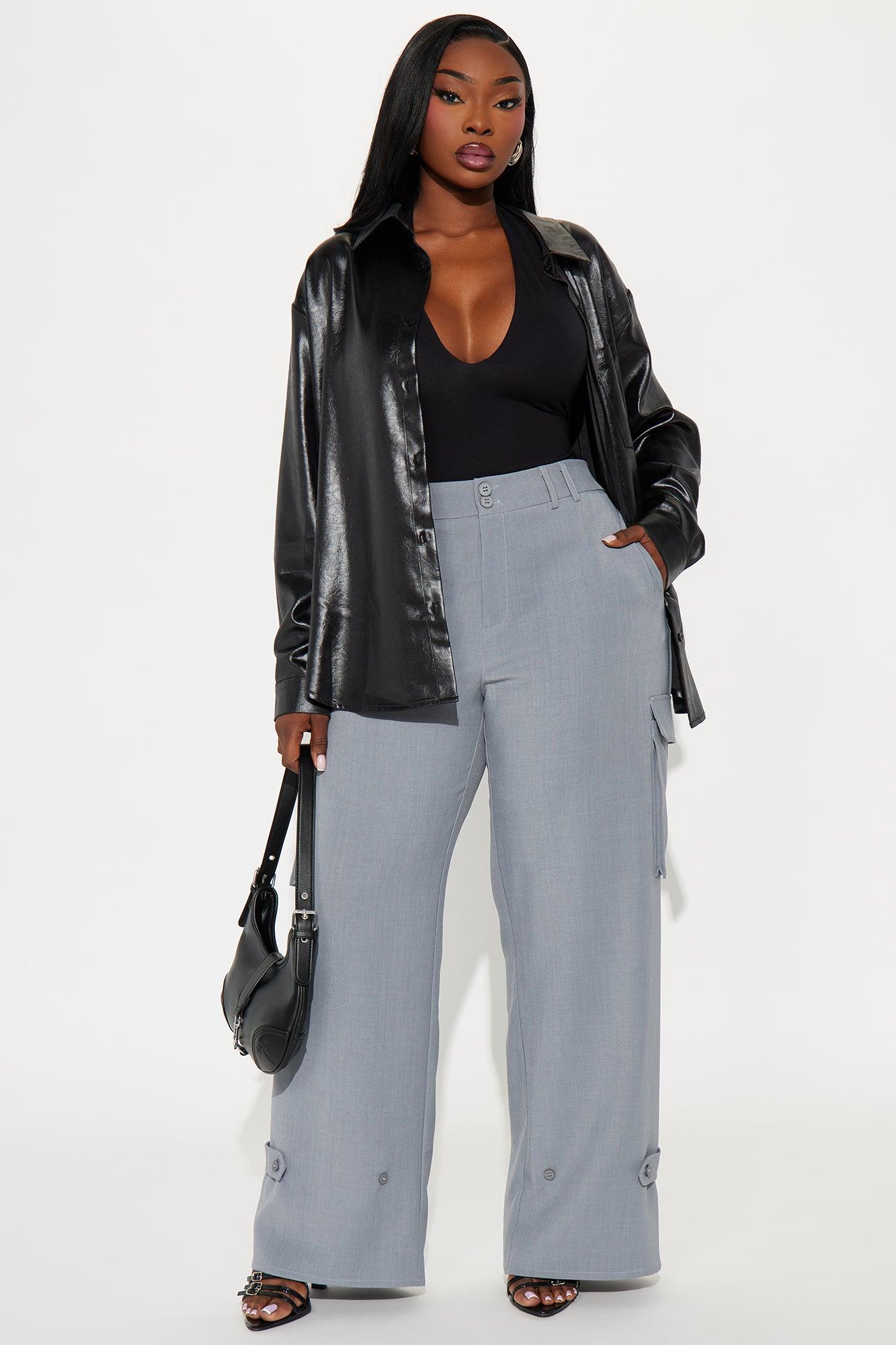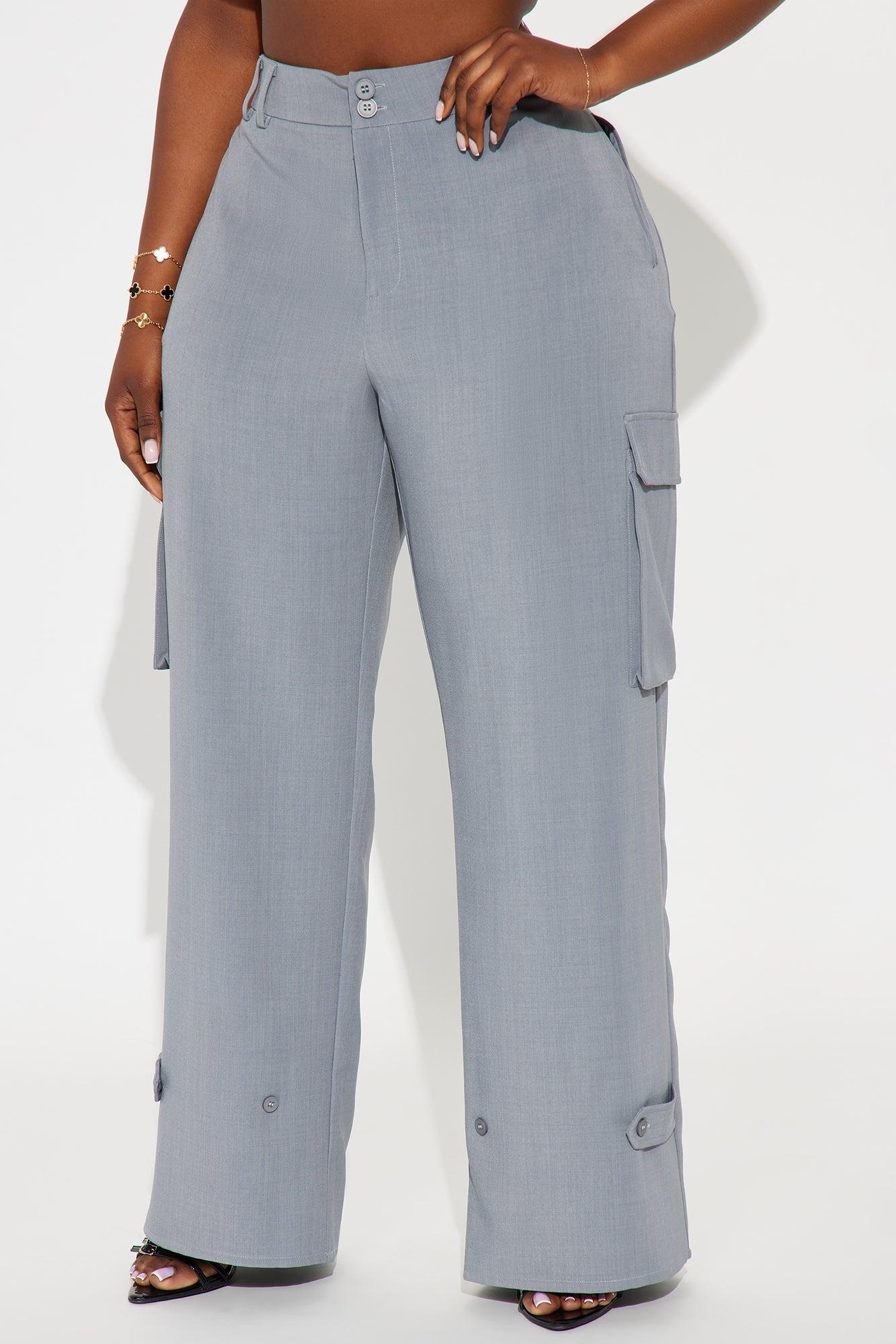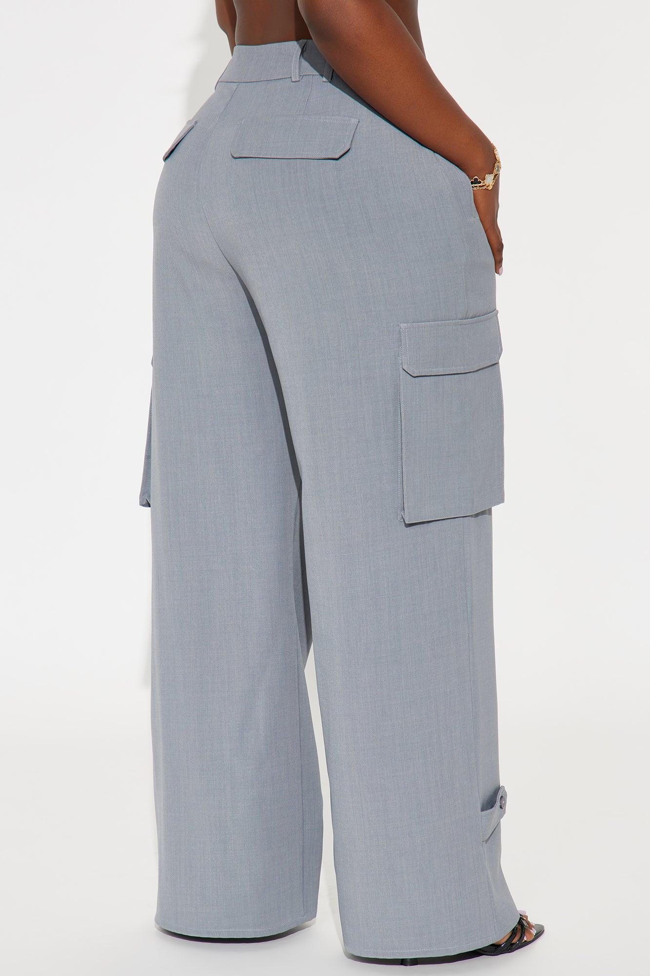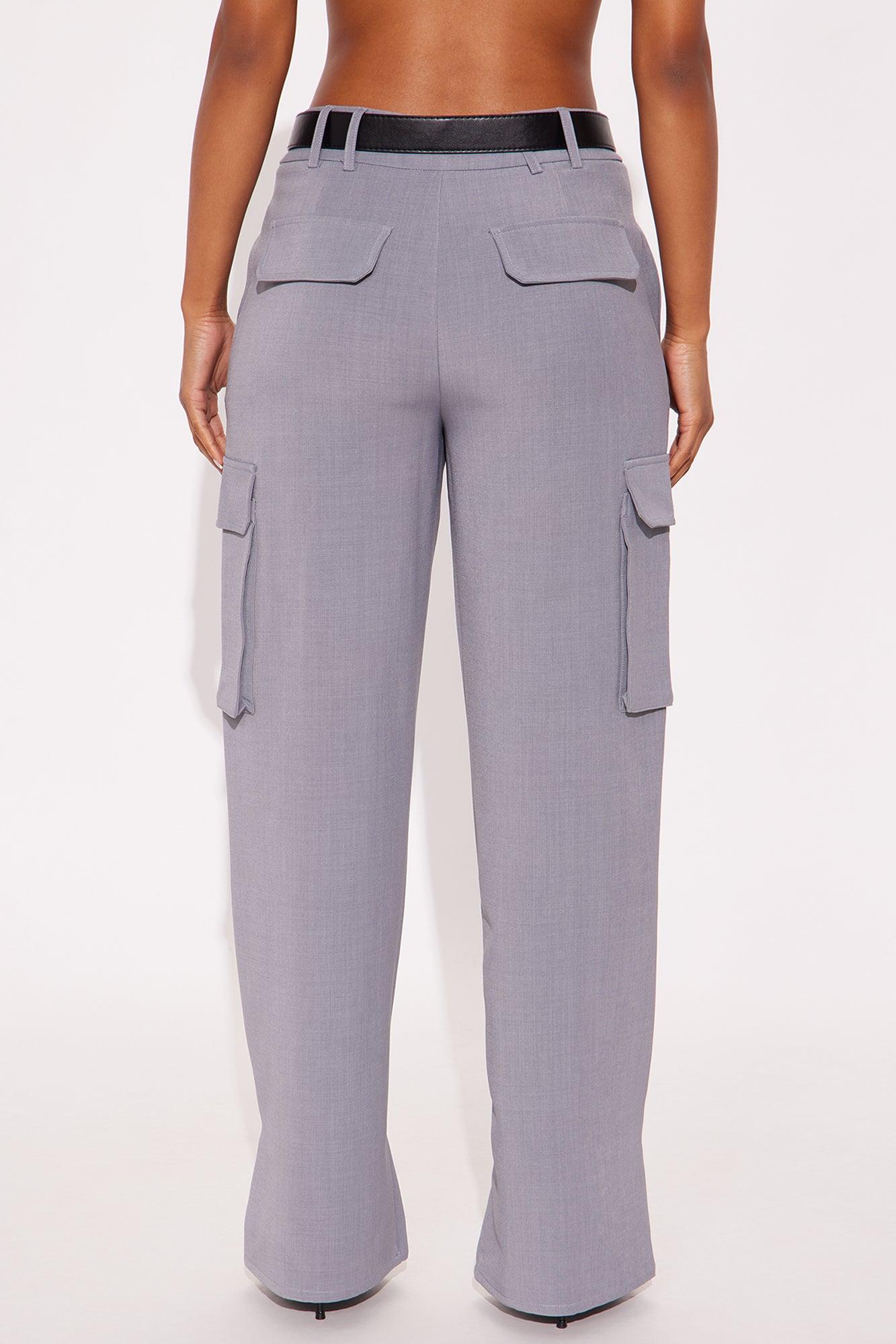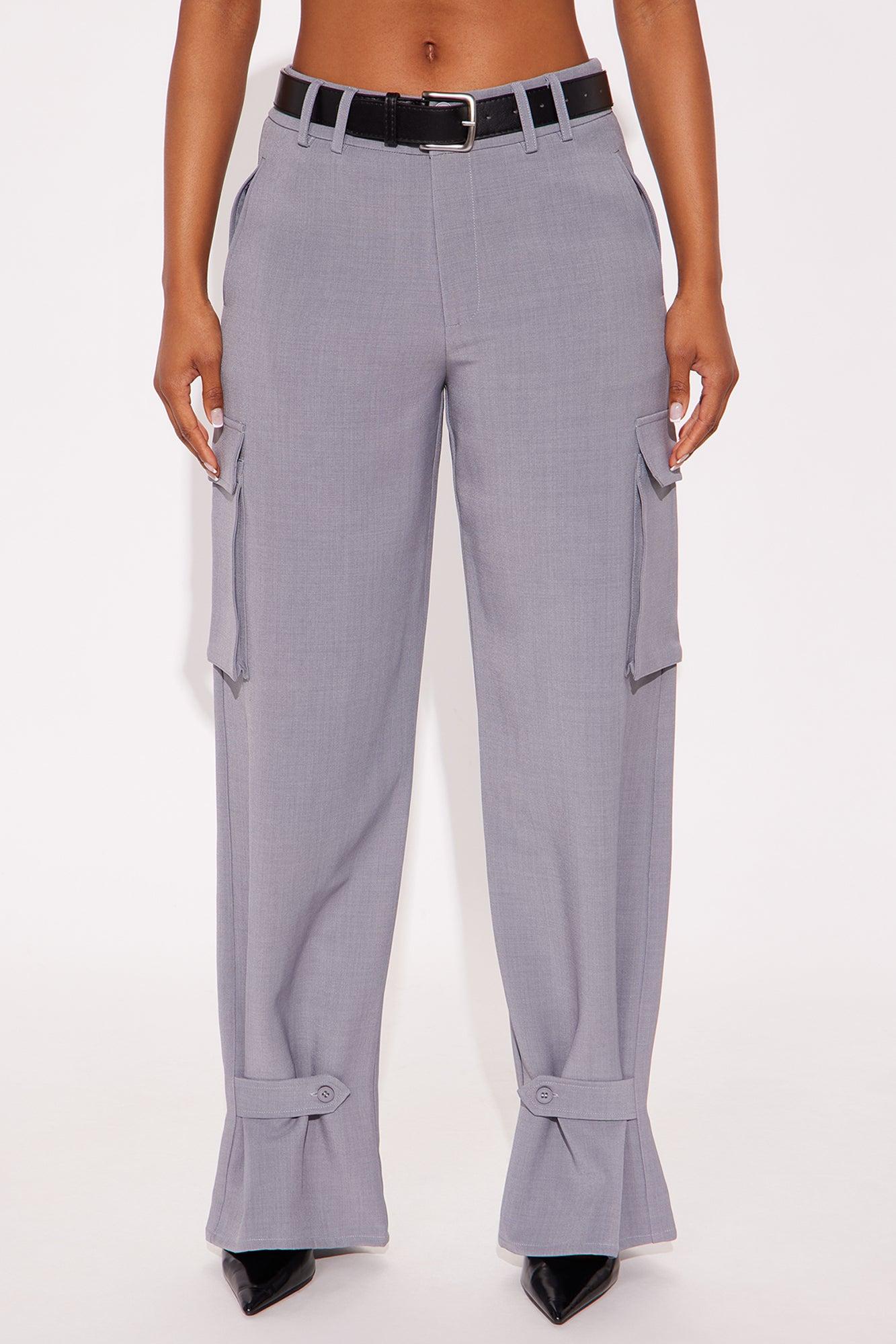 Trending Topic Wide Leg Belted Cargo Pant 32″ - Grey Female