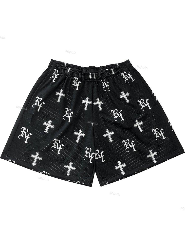 Trendy Cross Print Mesh Shorts. SPU: CP-89514-HWE Fabric Name: Polyester Pattern: Cross Print Process: Printed Style: Fashion Length: Short Popular Elements: Cross Print Occasion: Daily Theme: Summer