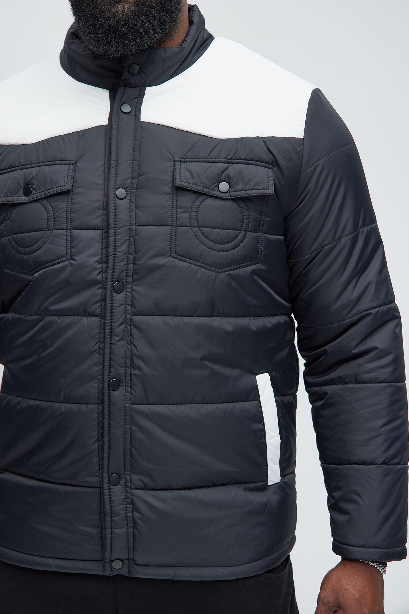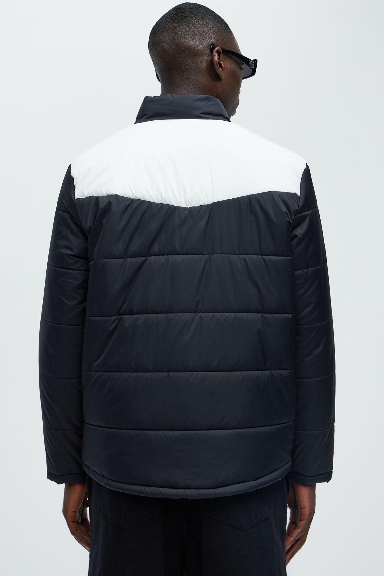 Available In White. Mock Neck Front Full Snap Closure Snap Detail On Front Chest Pockets Embroidered Detail On Chest Pockets Side Hand Pockets Color Blocking Details Padded Long Sleeve Shell 1: 100% Nylon Shell 2: 100% Nylon Lining: 100% Polyester Imported California Proposition 65 WARNING: Cancer and Reproductive Harm - www.P65Warnings.ca.gov.