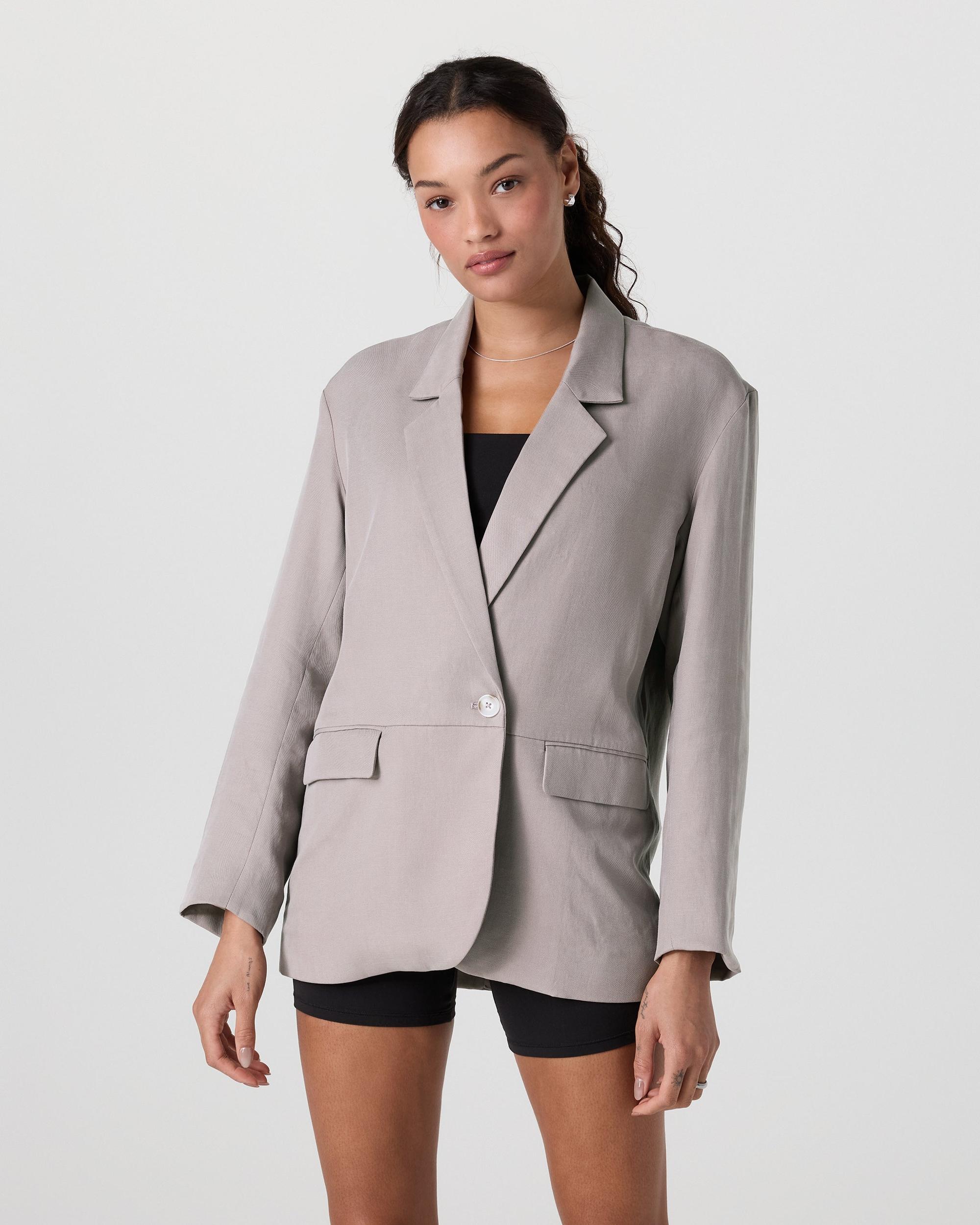 From elevating your matching sets to in-office workdays, the fully-lined women's Trestles Twill Blazer in Pebble is versatile and flattering. Shop now.