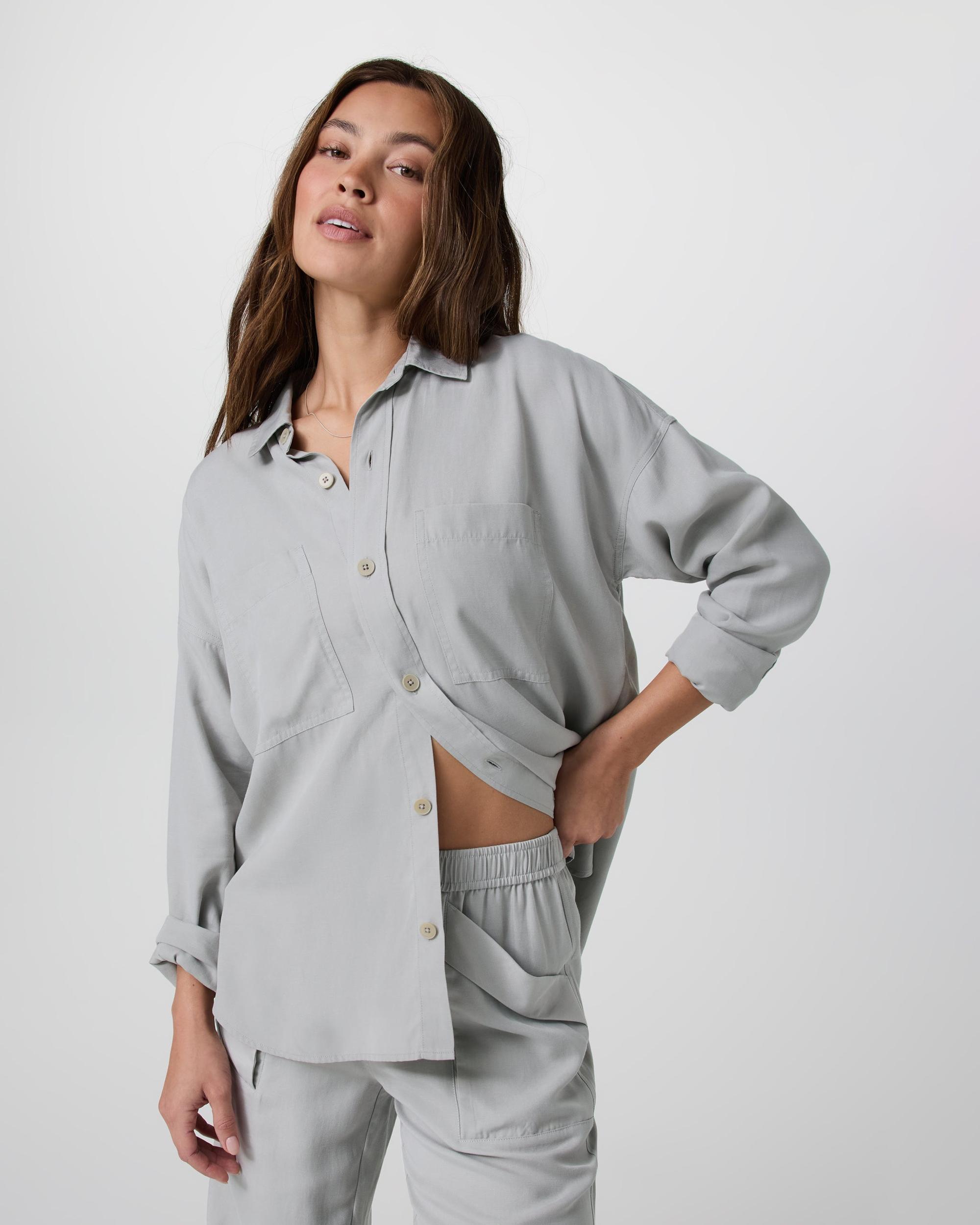 The Trestles Twill Button Up in Talc is a wear-anywhere layering piece made from gorgeous, drapey twill. Shop this women's top from Vuori.