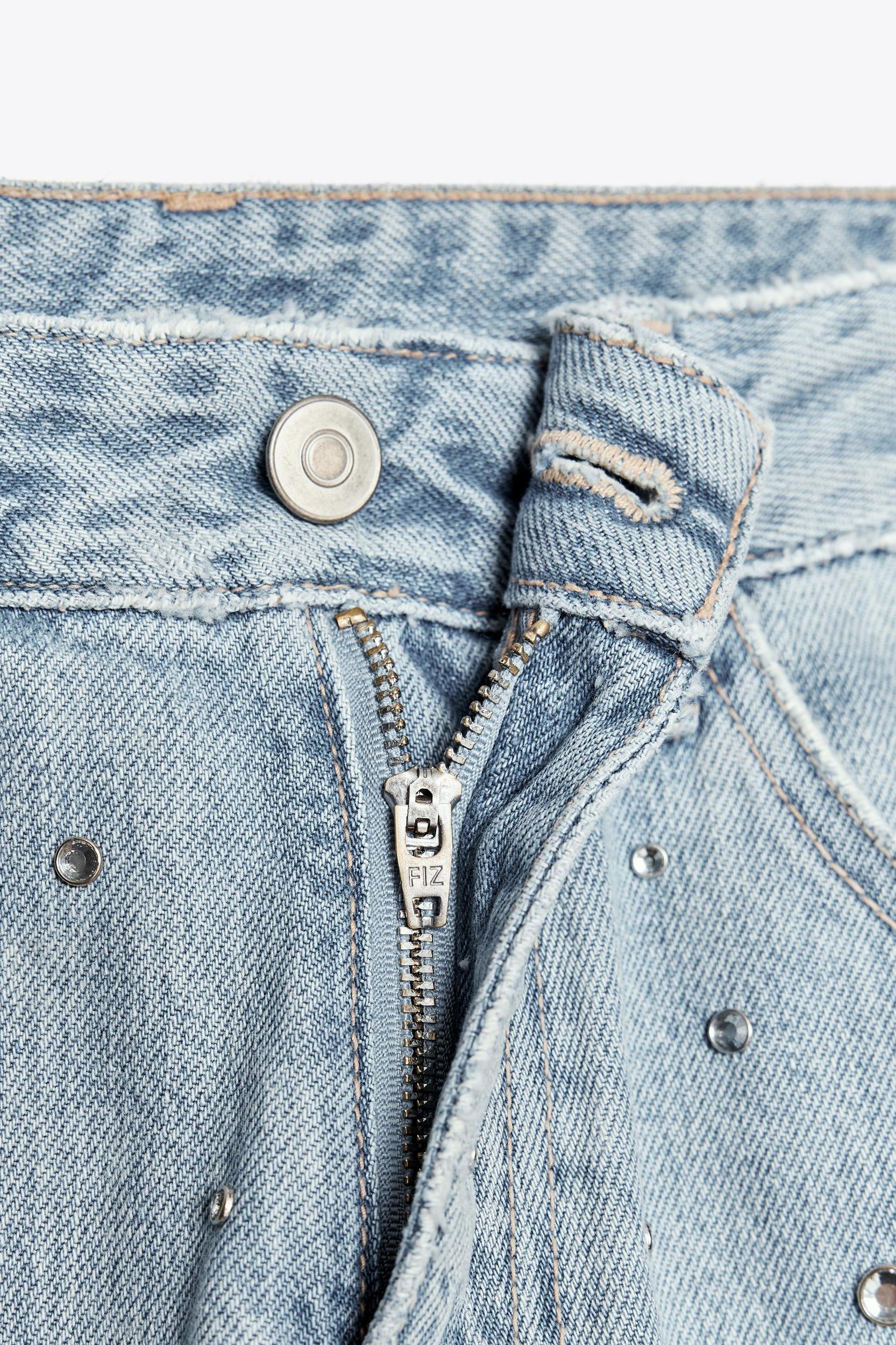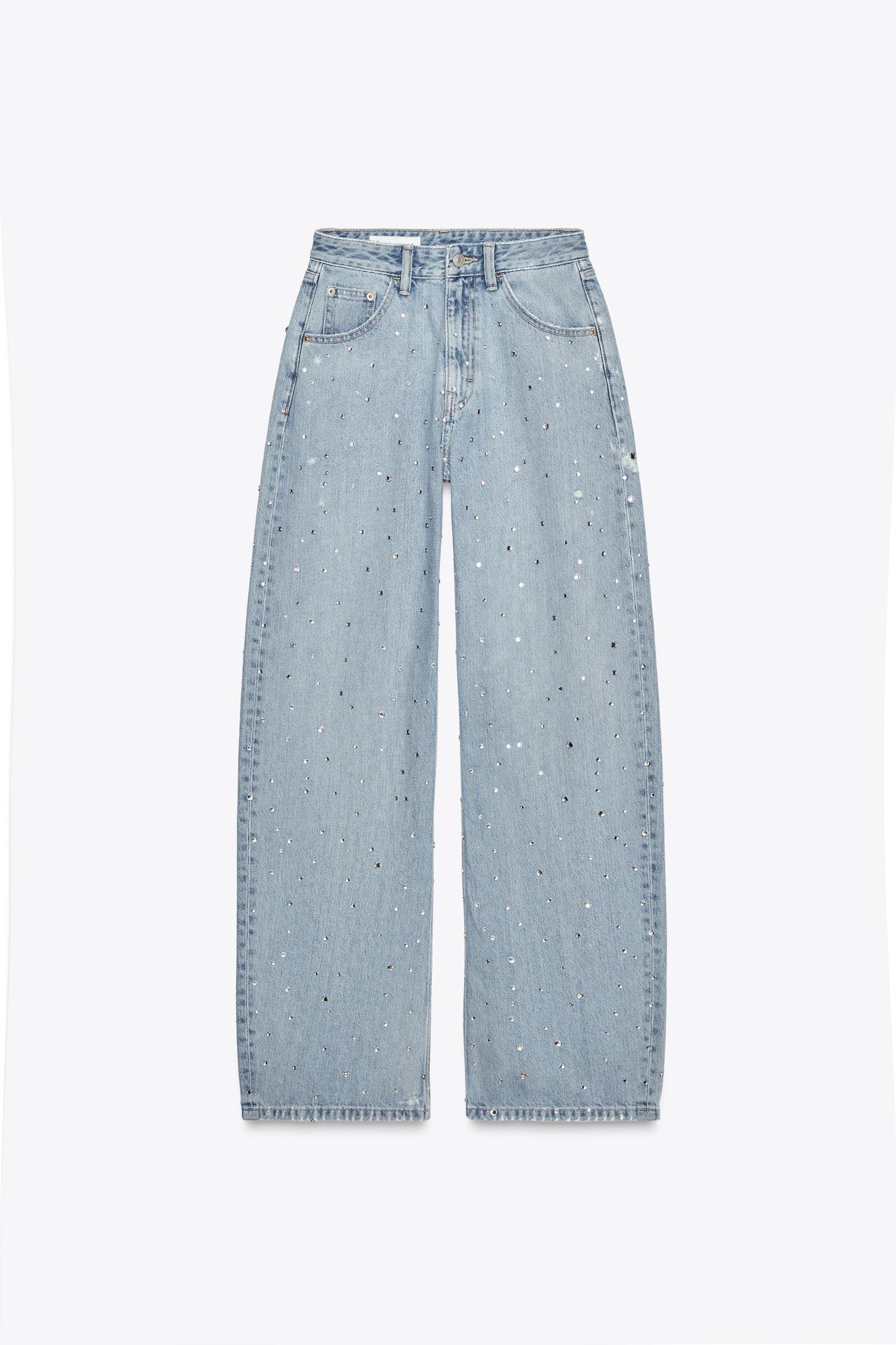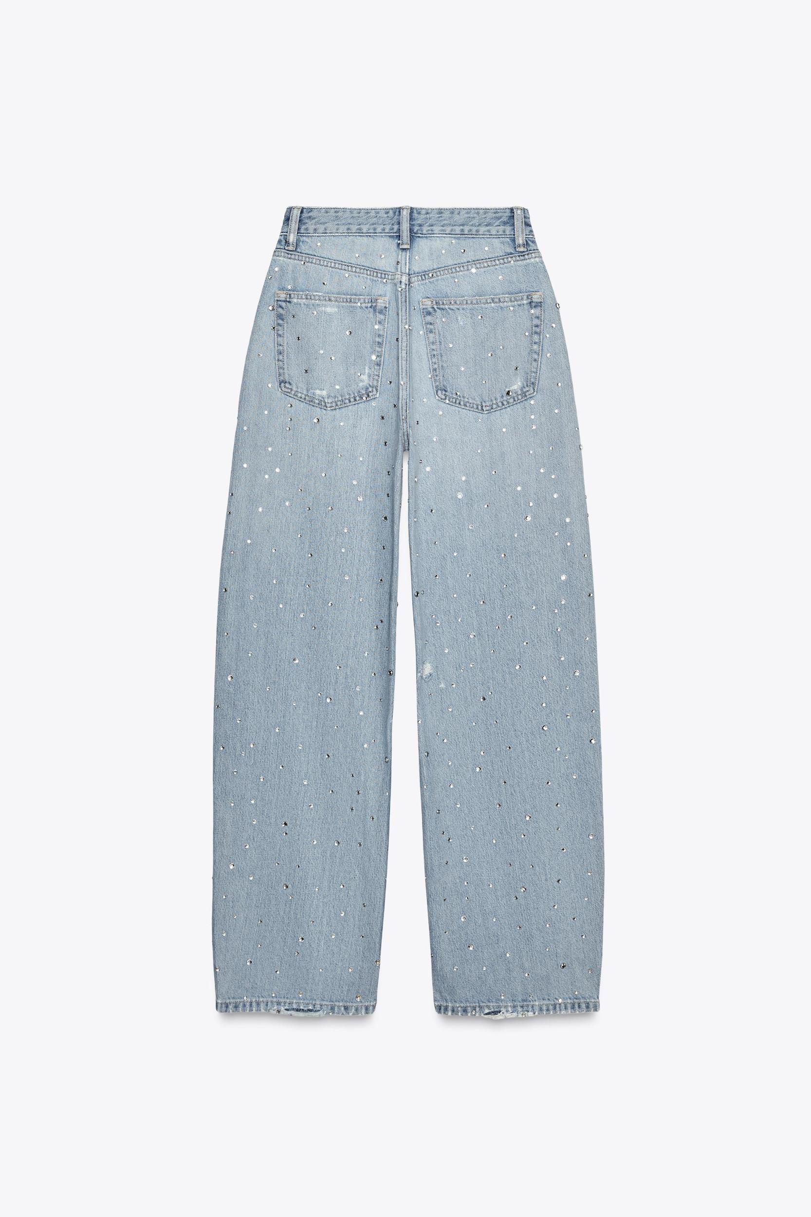 TRF CURVED HIGH WAIST RHINESTONE JEANS