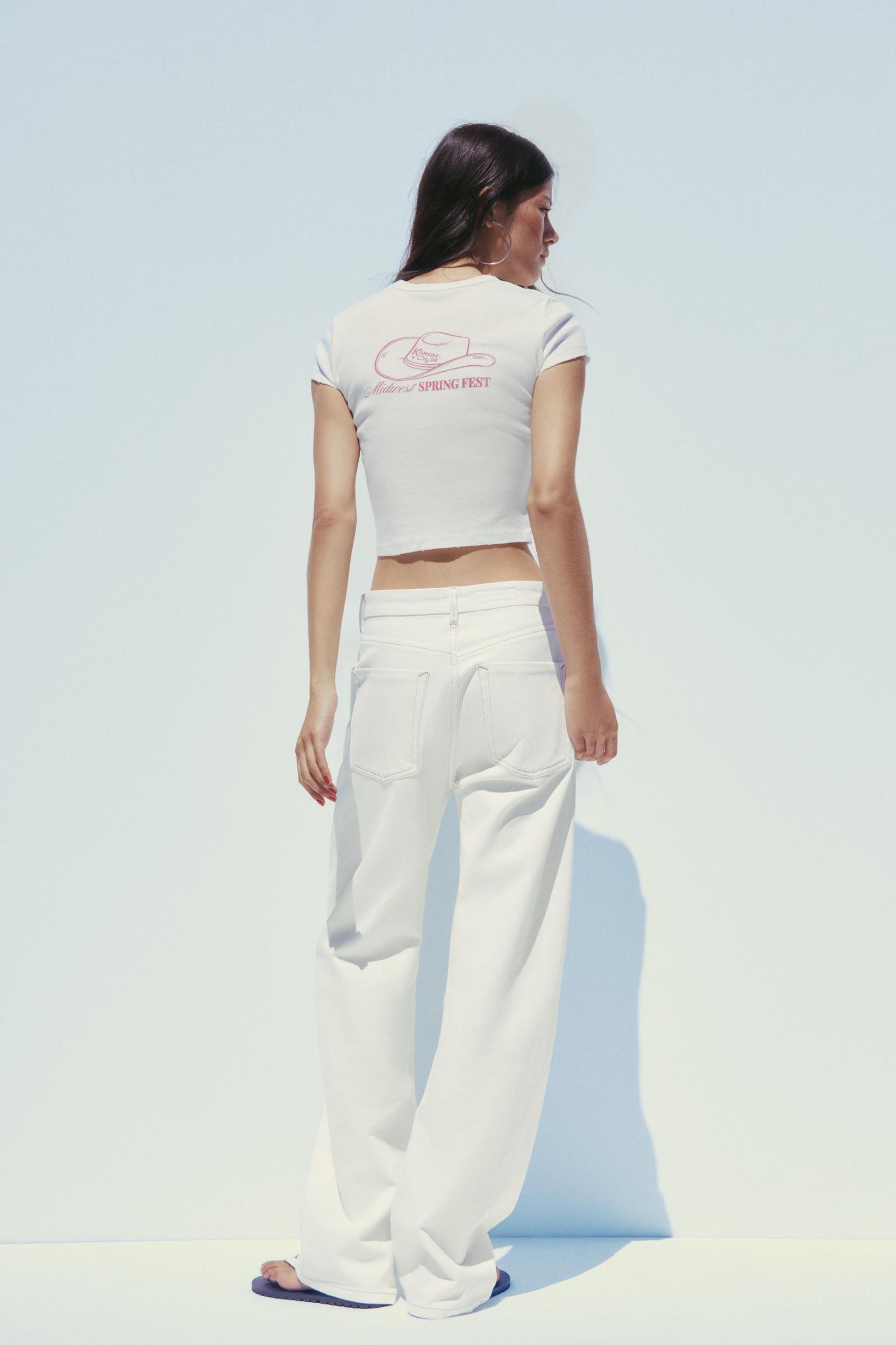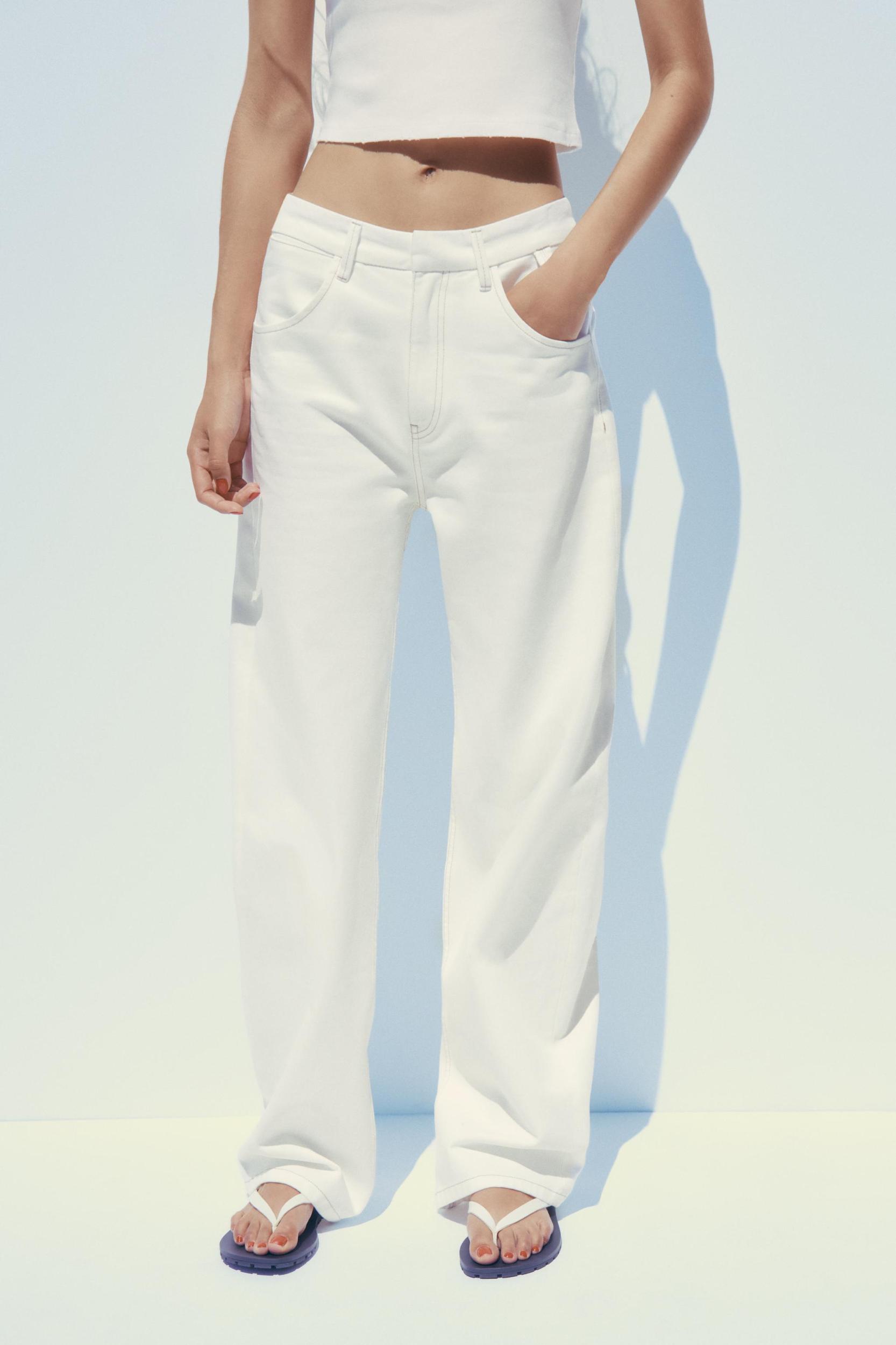 HIGH-RISE - CURVE High-waisted jeans with belt loops. Front and patch pockets at the back. Contrasting combined seam detail. Front zip and metal hook closure.