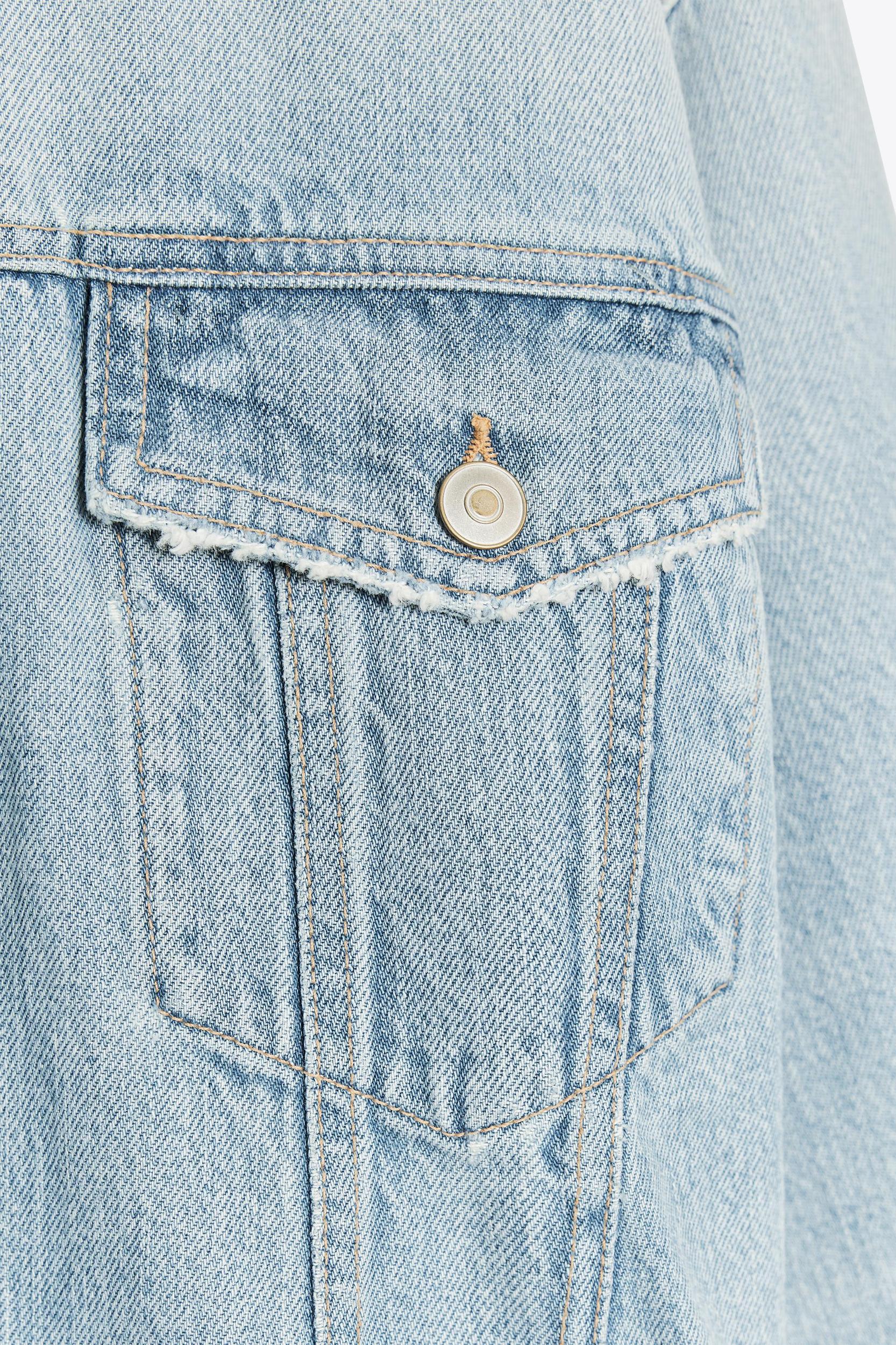 Overshirt with a lapel collar and long sleeves finished with cuffs. Patch pockets with flaps on the front. Rips and marked seams detail. Front closure with metal buttons.