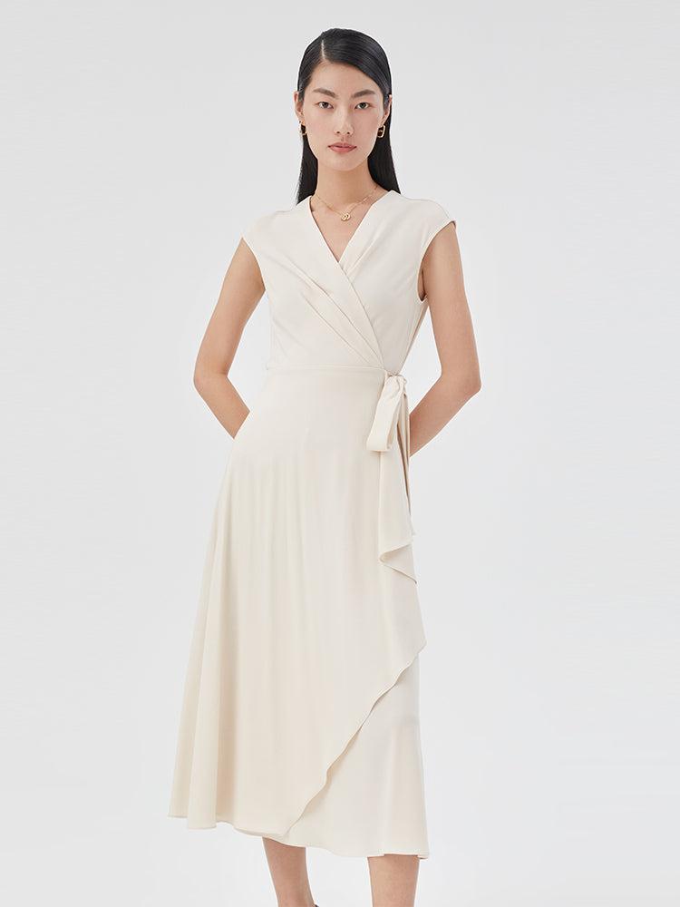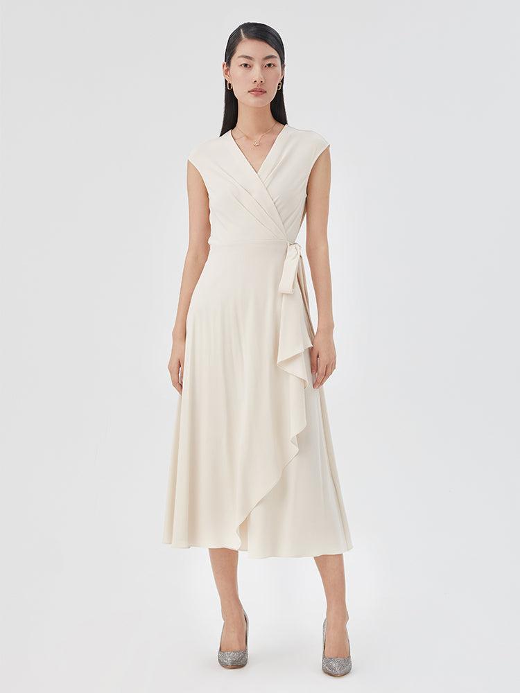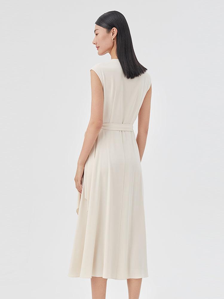Triacetate Asymmetrical Gathered Waist Maxi Dress