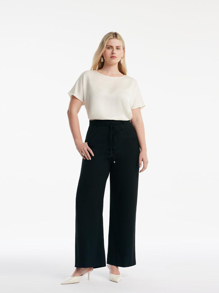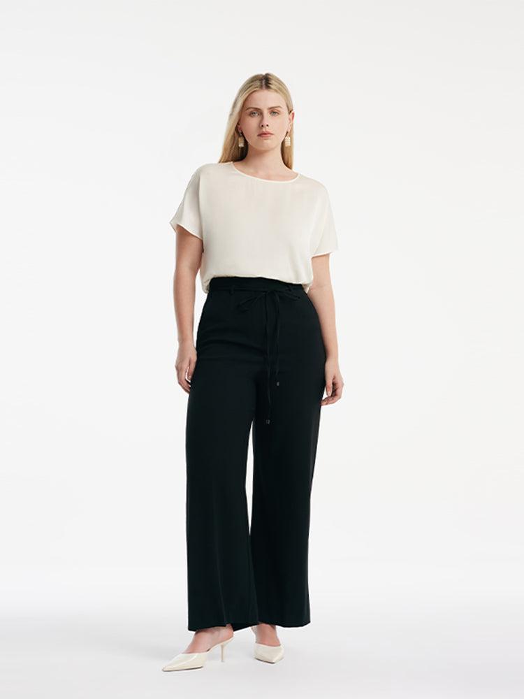 -Triacetate -H-line fit -With belt These pants are made of triacetate fabric, which is comfortable and skin-friendly. The chic drawstring belts are adjustable for waist size. The straight legs are suitable for all body types and are extremely inclusive. They can be paired with different tops for various styles. Whether