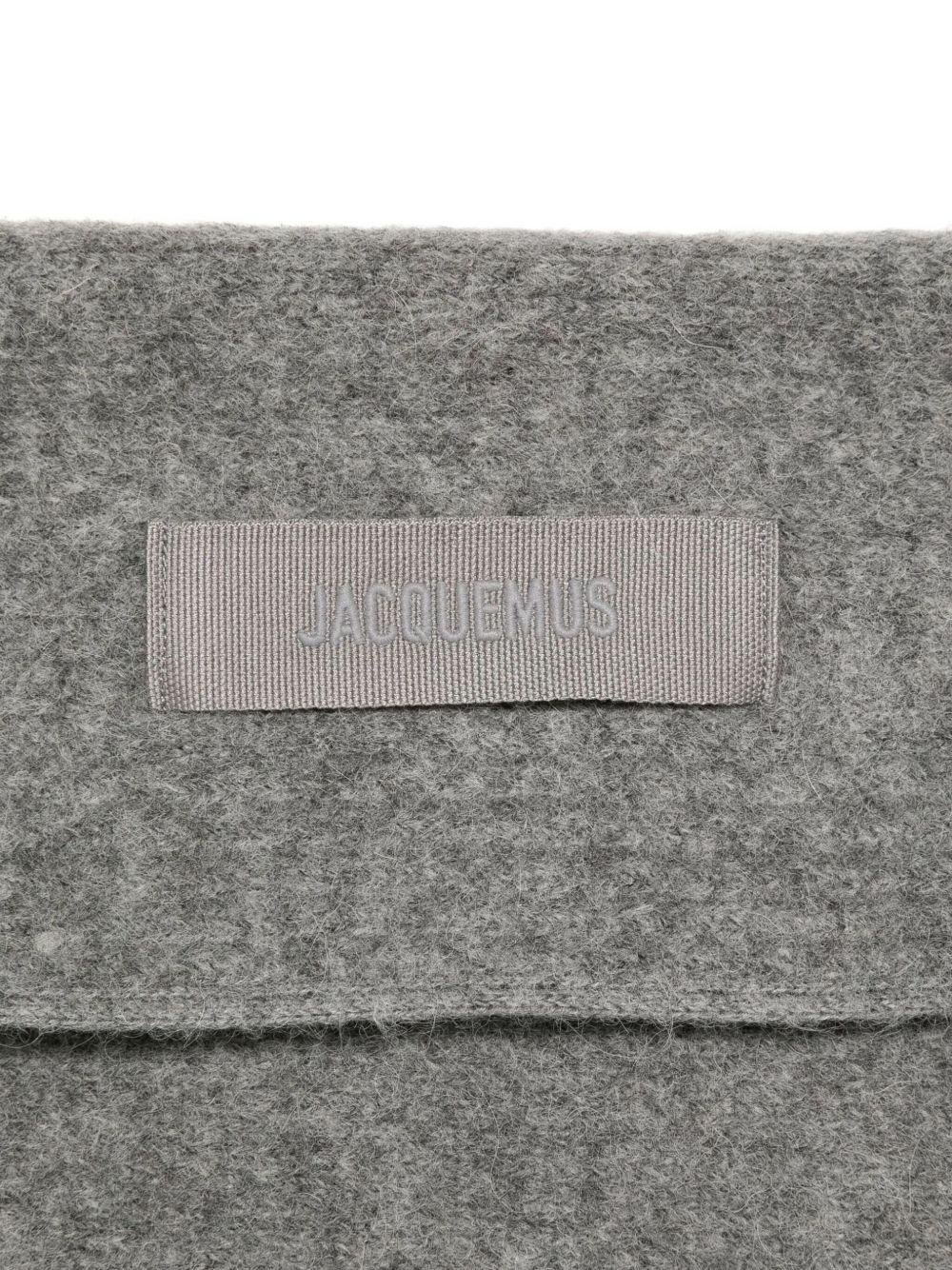 Jacquemus triangle-shape ribbed scarf | Grey | grey | ribbed knit | long collar | open front | tie detail | Alpaca Wool/Polyamide/Wool | Scarves | Accessories | Men | Scarves | Accessories | Women