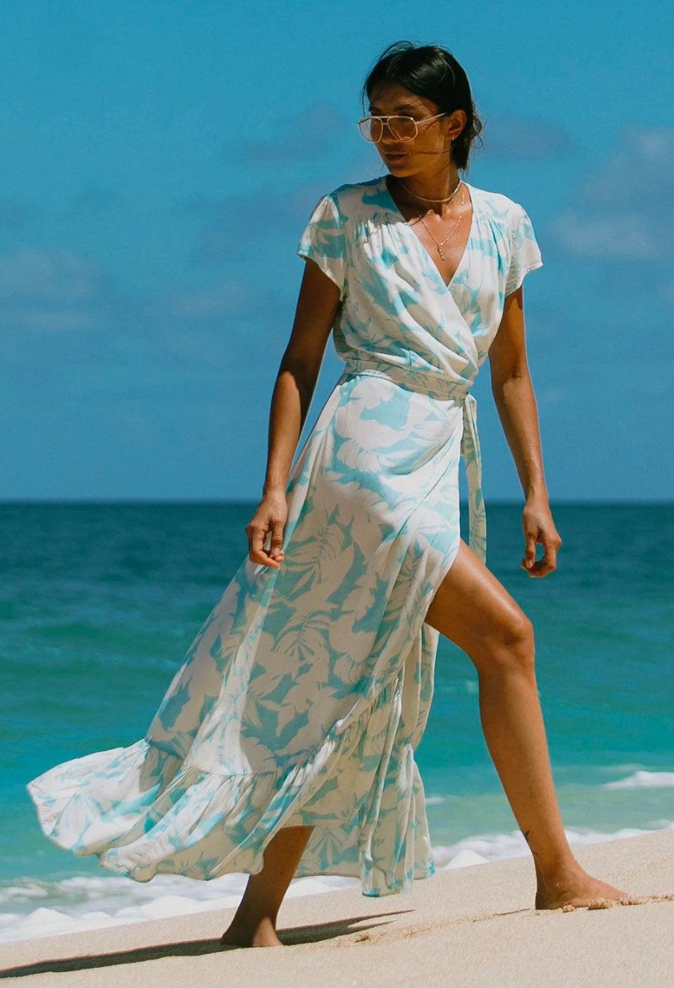 Tribal Hi-low Maxi Dress. The short flutter sleeves, high low ruffled, hem, detail add flair to this maxi dress. We can't get enough of the chic style of this dress, and it's available in a beautiful tropical print