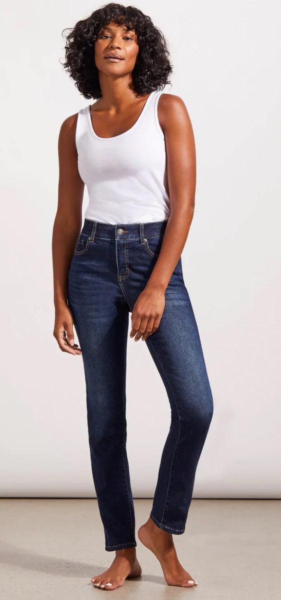These curvy, straight leg jeans offer a reliable fit elastic waistband to cinch in your waist, flattering darting above the back pockets to give you that extra lift, soft stretch denim, mid rise five pockets and 32 inch length, they can do no wrong. Cold water wash no bleach tumble dry low low iron. 67% cotton 32% polyester, and 1% spandex.