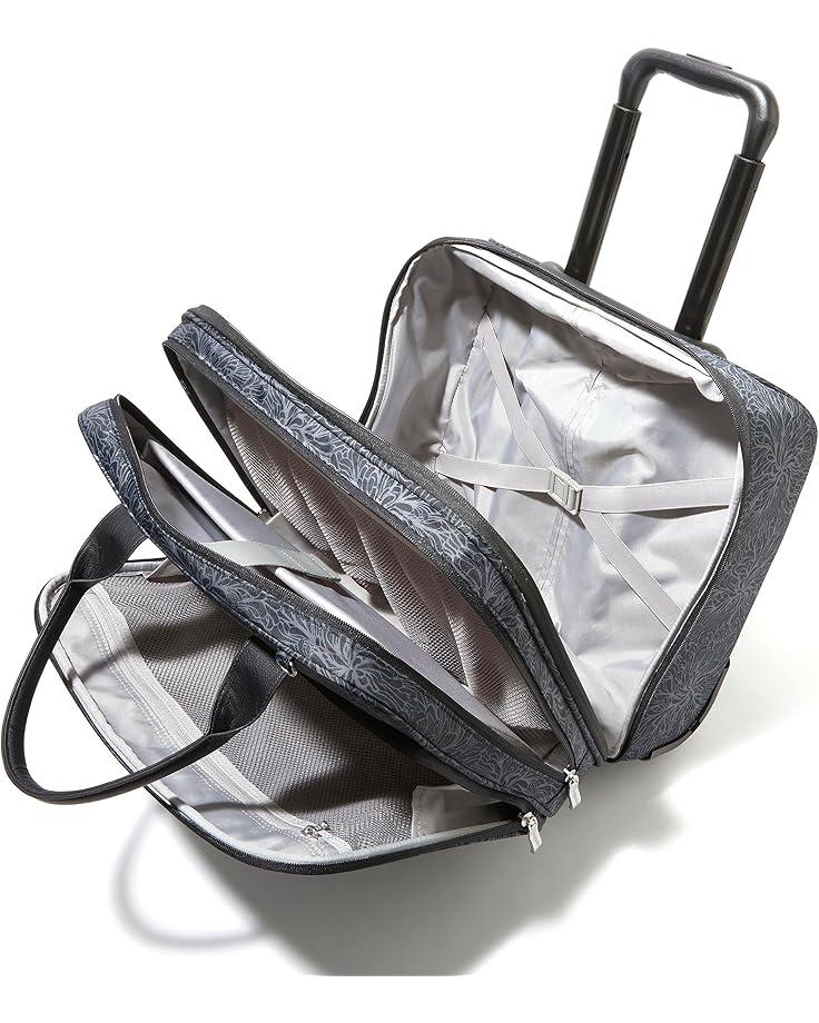This Baggallini® 2 Wheel Tote bag is designed for on-the-go organization and stress-free travel. Featuring a two-height telescoping handle, it is easy to carry.