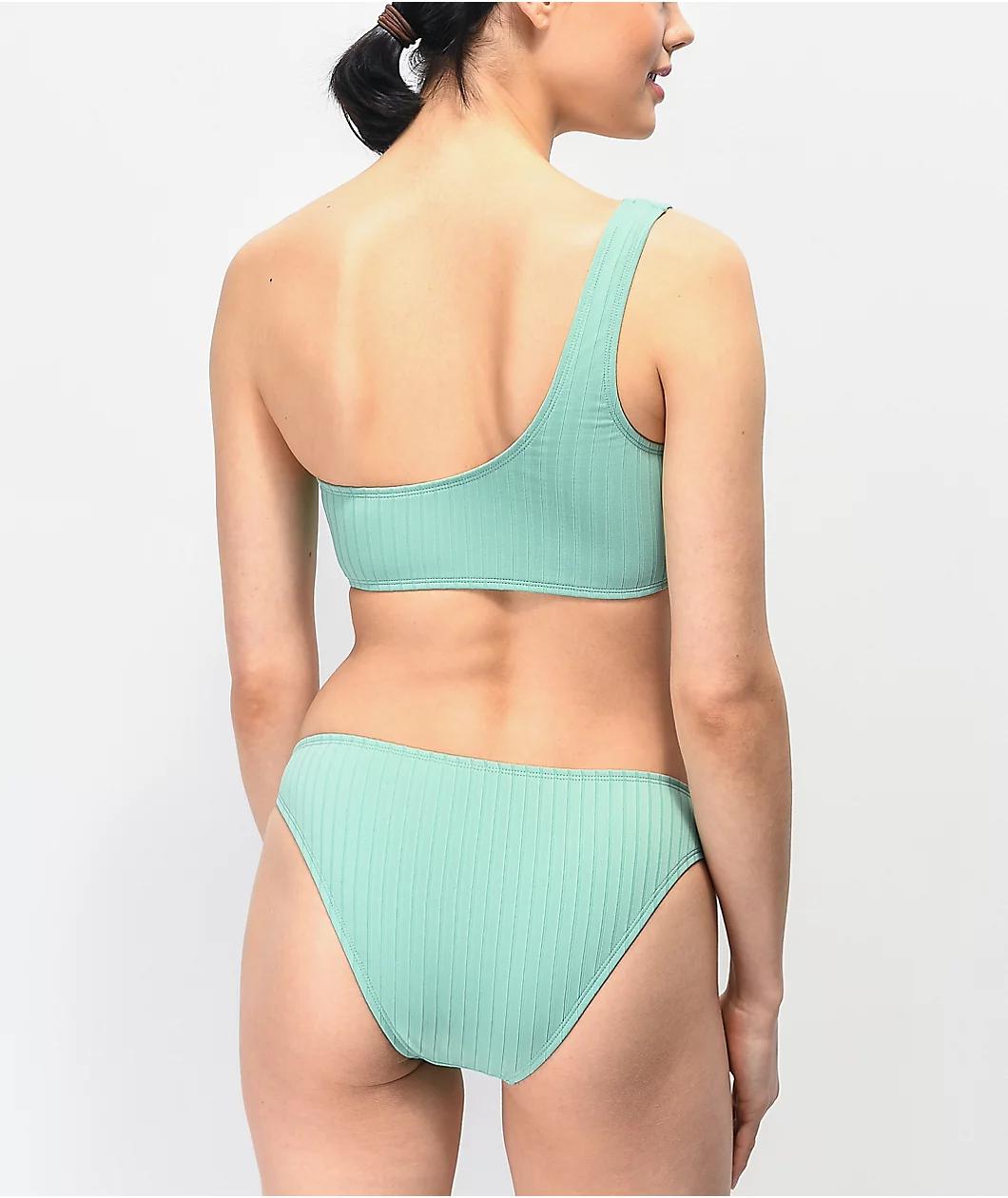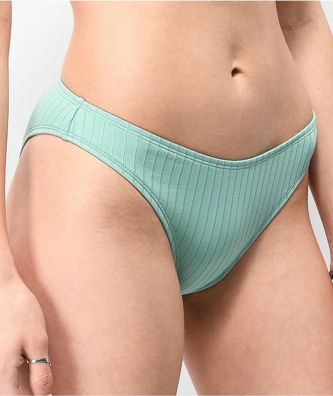 Trillium Kyra Ribbed Mint Cheeky Bikini Bottom