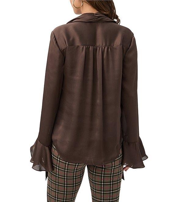 Trina Turk Alora Georgette Tie V-Neck Long Bell Sleeve Blouse