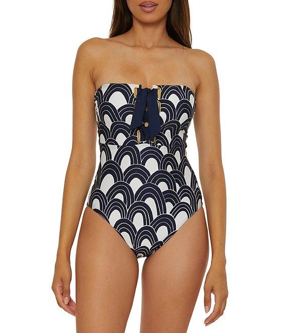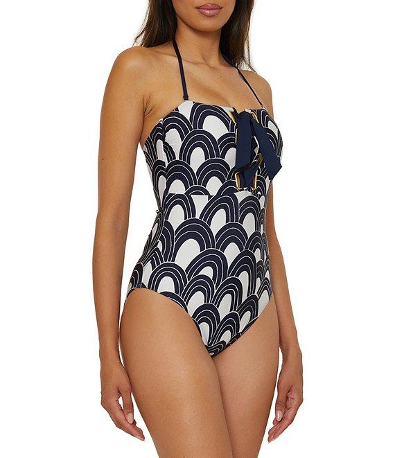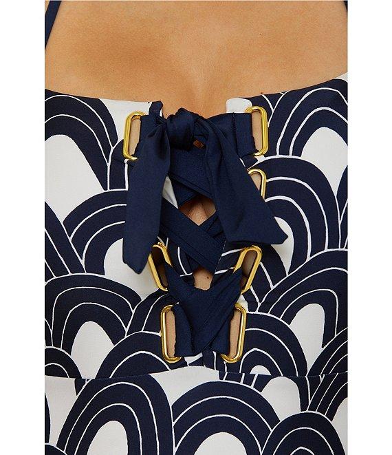 Trina Turk Arches Corset Lace-Up Halter One Piece Swimsuit