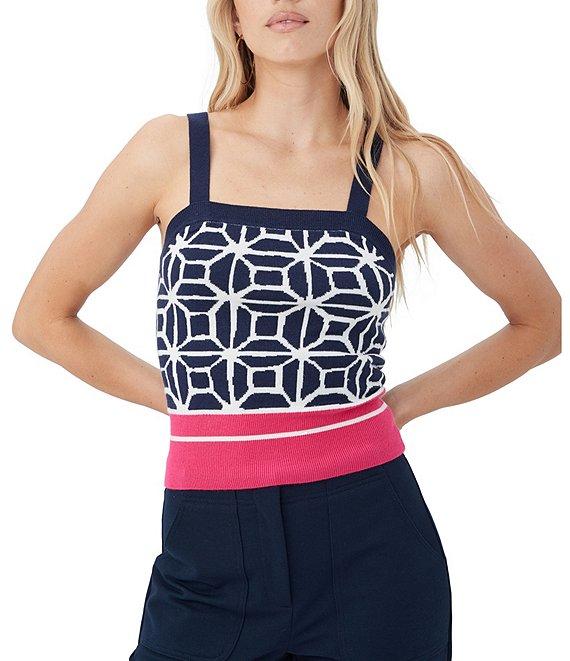 Trina Turk Casady Knit Pattern Square Neck Sleeveless Cami