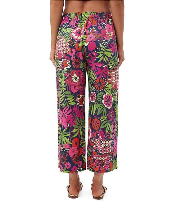 Trina Turk Estella Floral Print Flat Front Straight Leg Cropped Pants
