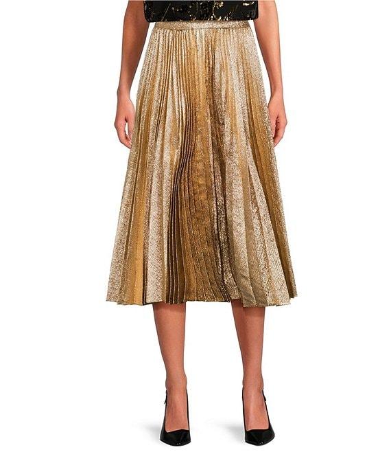 Trina Turk Faye Luminary Metallic Pleated Midi Skirt