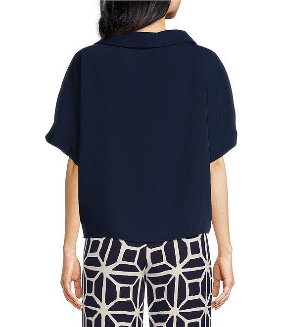 Trina Turk Ember Multi Print Point Collar Button Front Short Sleeve Coordinating Top