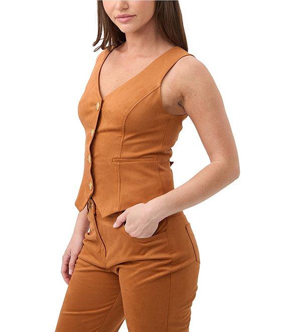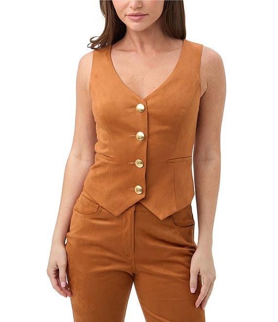 Trina Turk Kofi Faux Suede V-Neck Sleeveless Vest